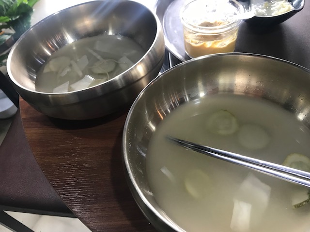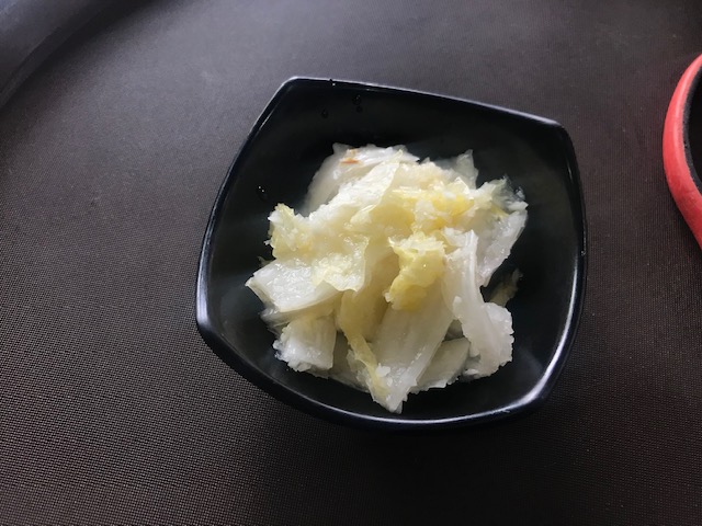마늘의 민족이 만든 김치 답게 밑반찬으로 나오는 백김치는 마늘 맛이 많이 났습니다. 크게 시원하고 아삭한 느낌은 아니었으나 적당히 먹을만했습니다.