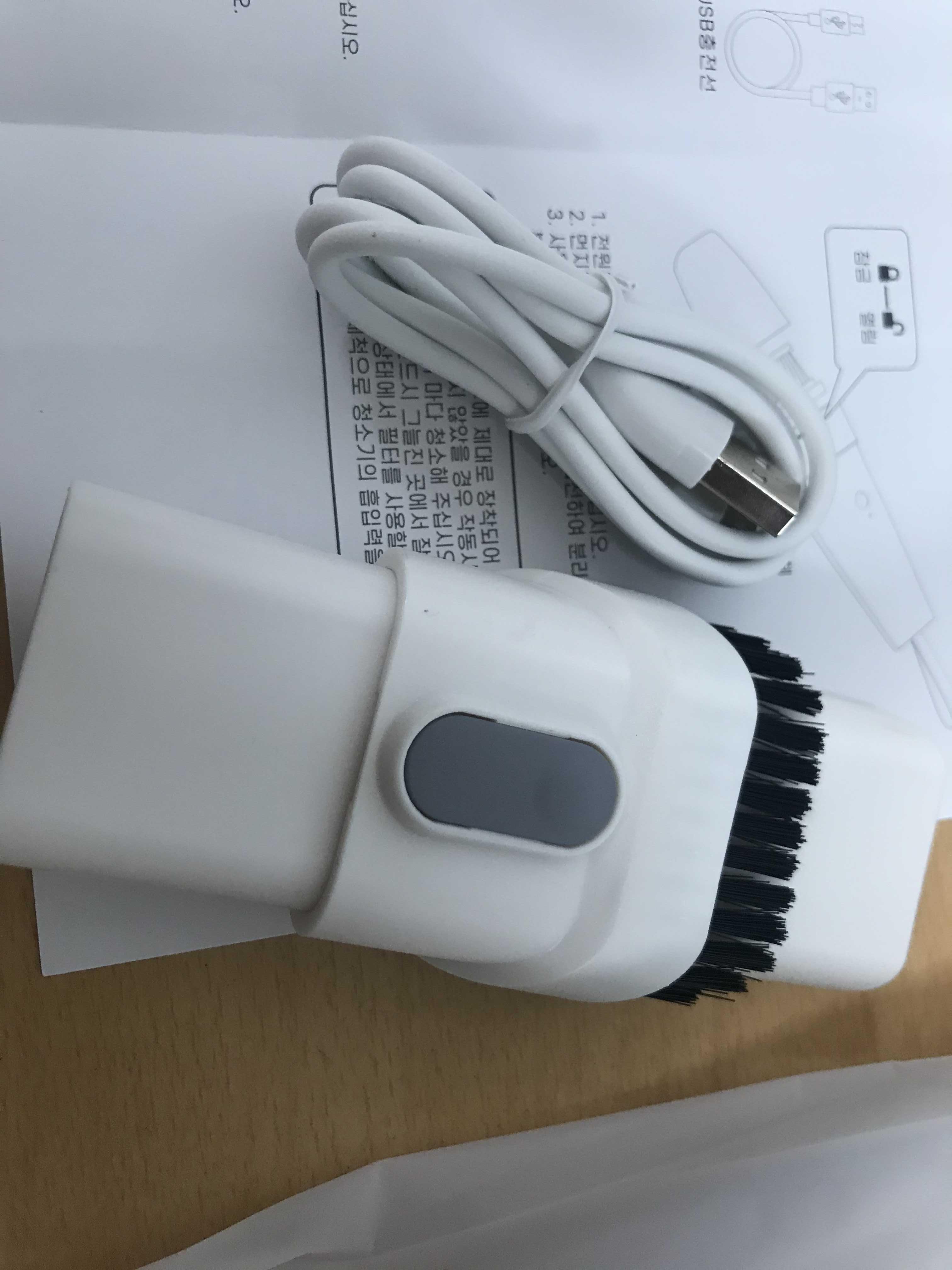 충전은 5핀 케이블을 이용합니다. 범용이기 때문에 어디서든 사용할 수 있습니다. 2in1 브러쉬가 동봉되어 있기 때문에 작은 틈새도 잘 청소할 수 있을 것 같습니다. 시트사이나 창문 틈을 잘 청소할 수 있을 것 같습니다.