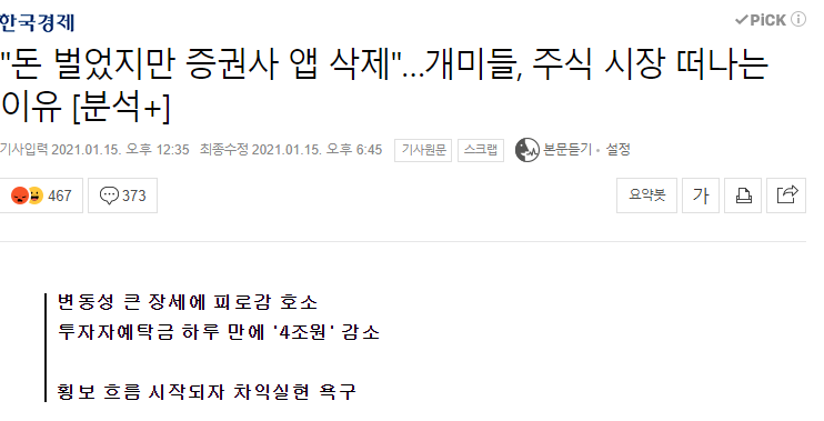 온탕과 냉탕을 왔다갔다하는 증시입니다. 오늘은 주식장은 개미들의 매도세가 두드러지는 장세였습니다. 얼마 전, 저도 국내 주식 전량을 매도하였는데 그때문인지 요새는 삶의 낙이 하나 줄어든 기분입니다.