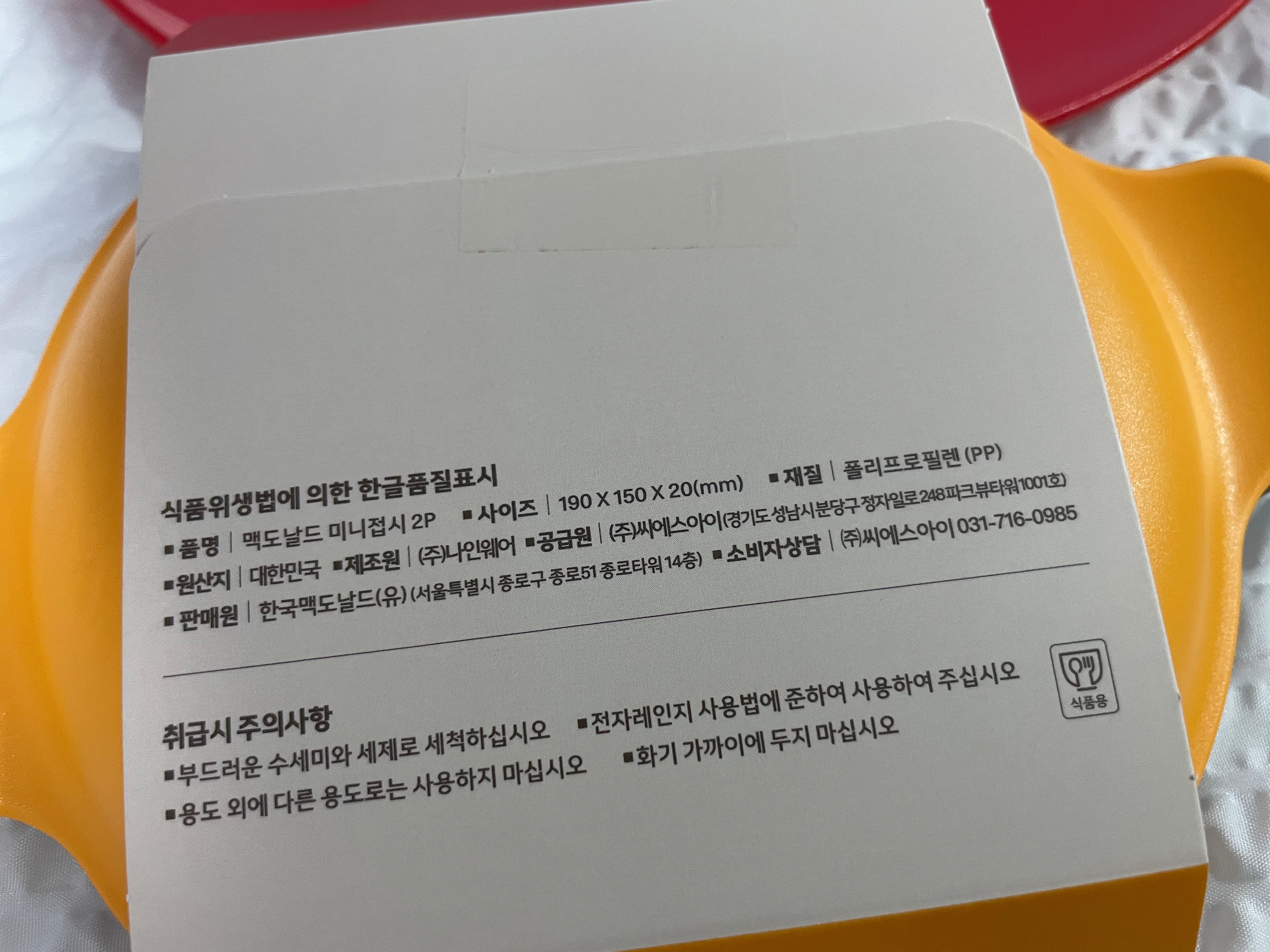 한정판 피크닉 세트, 옆면에 맥도날드 피크닉 세트라고 써있습니다. 한정판이니까 샀지 늘 파는 거라면 사는 것을 주저했을 것 같습니다. 구석에 골판지가 보이지만 전체적으로 심플한 디자인입니다.