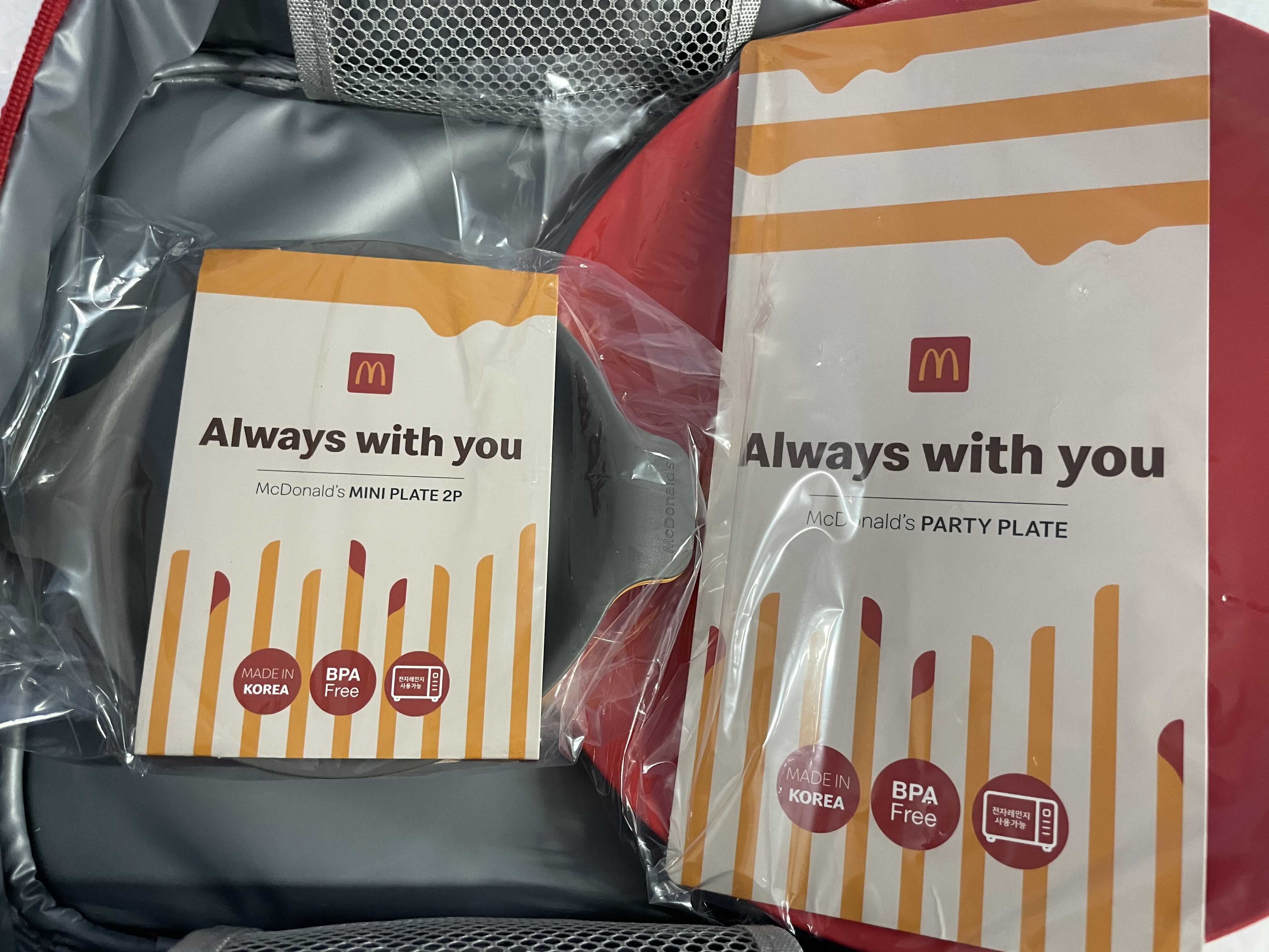 런치박스도 나쁘지 않았습니다. 김밥을 싸가지고 다니기 좋았죠. 이번에는 보냉백과 접시가 들어있는 피크닉 세트입니다. 세트메뉴 주문시(스페셜 제외) 15,500원을 추가로 내면 받을 수 있습니다. 사실 처음에 가격보고 이건 너무 비싼거 아닌가 생각했습니다. 들어있는 내용물도 달랑 접시 세개니까요. 그럼에도 불구하고 맥도날드까지 와본김에 사기로 했습니다.
