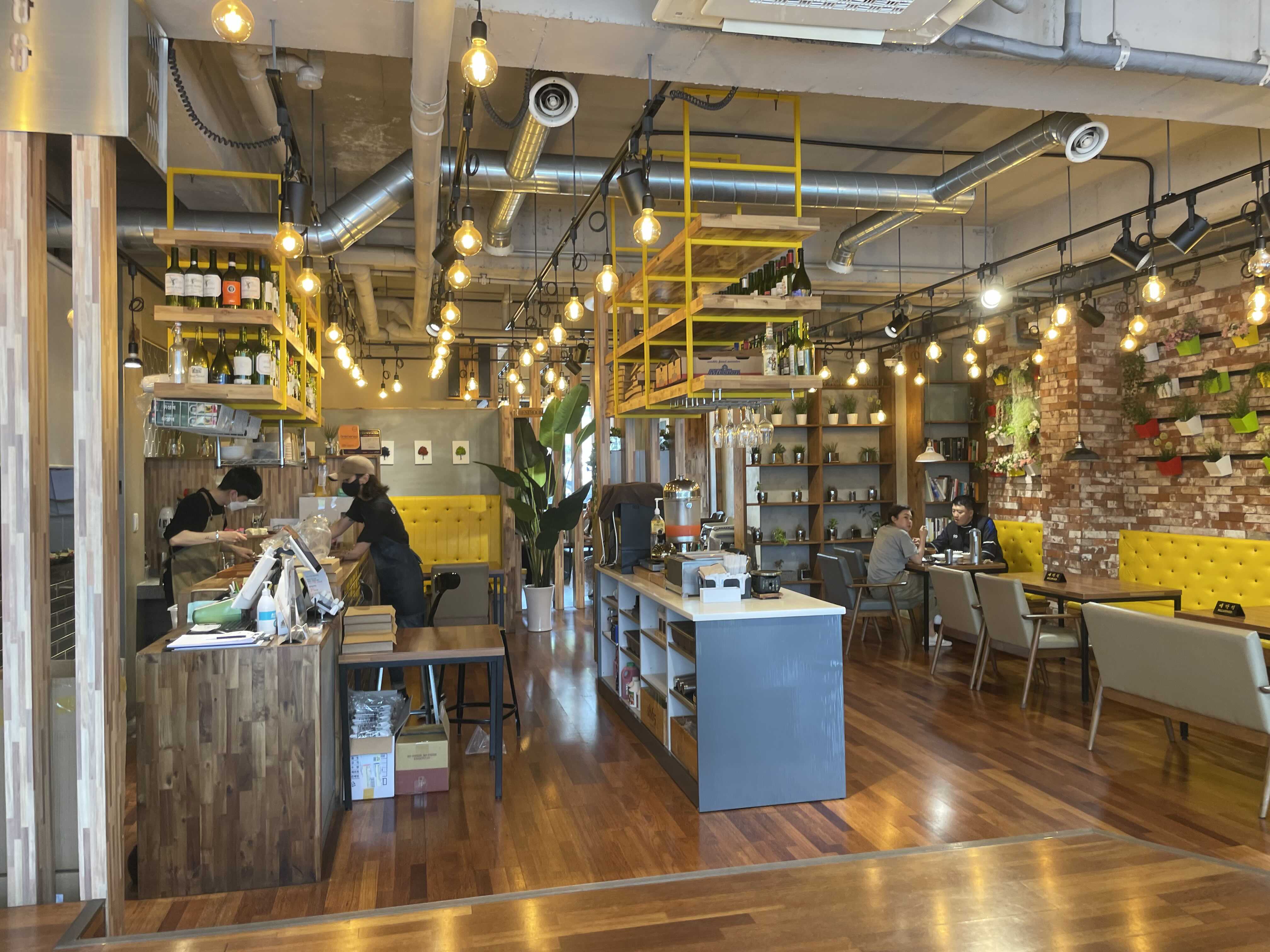 어반스트리트 컨템포러리의 실내도 바깥처럼 세심하게 인터리어가 되어 있습니다. 현관과 안쪽 중문 사이에서 기다리면 직원이 자리를 안내해 줍니다. 코로나 시국에 맞게 체온측정도 하고 출입도 통제하고 있죠. 제법 안심이 됩니다.