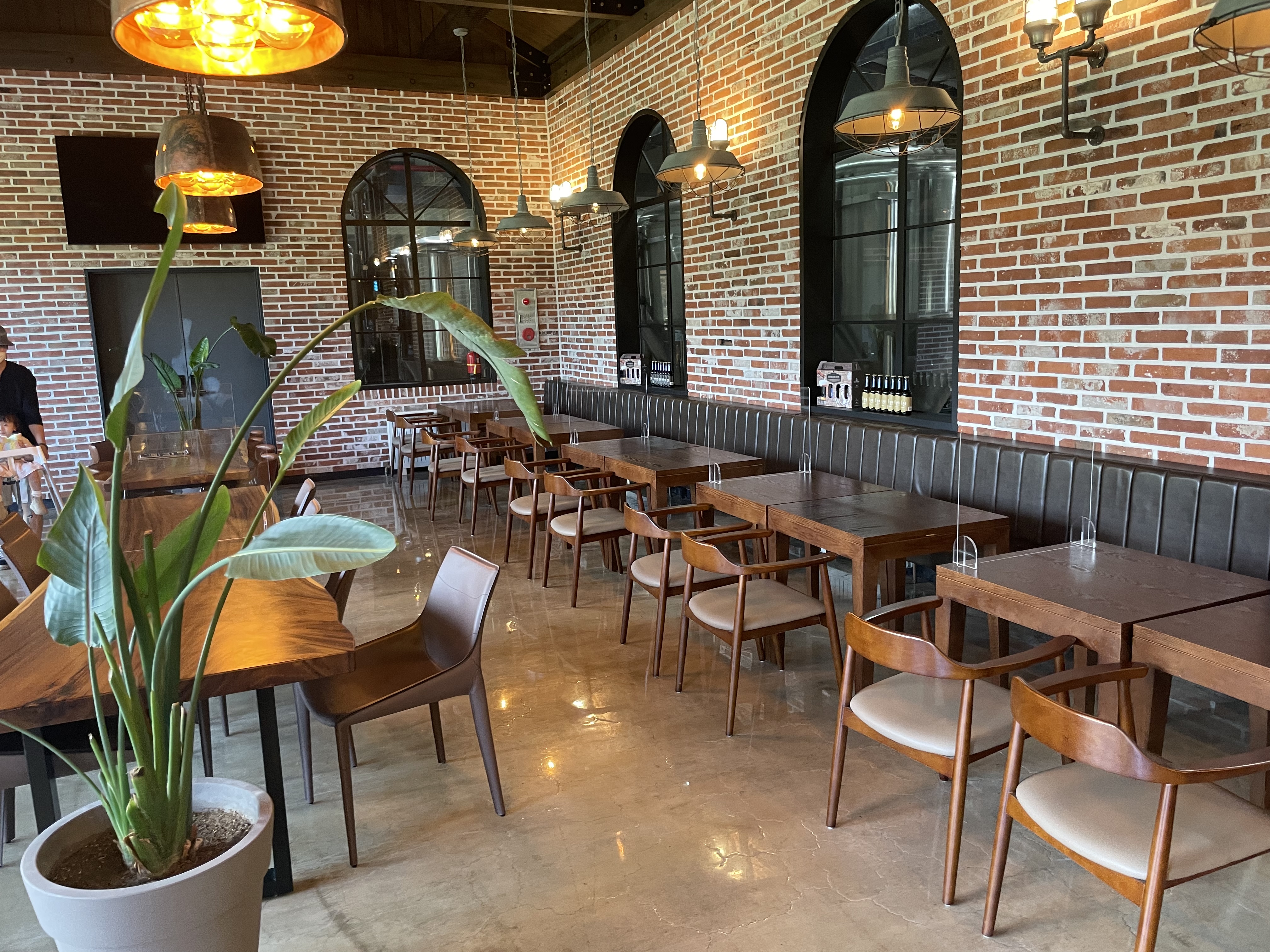 브라이트 바흐에는 실내 공간도 있습니다. 코로나 시국이니만큼 아크릴 칸막이도 있습니다. 오늘이 날씨가 좋았기 때문에 실내에서 먹는 사람은 많지 않았습니다. 실내도 높은 천장을 가지고 있었기 때문에 답답하지는 않습니다.