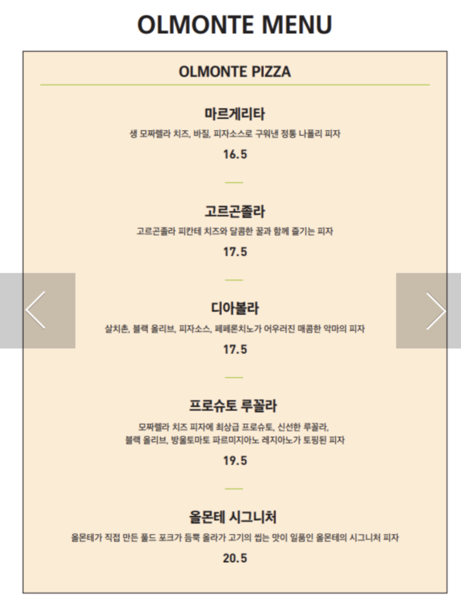 나폴리 스타일의 얇은 도우를 가지고 있는 이탈리안 피자를 먹었습니다. 화덕이 있어서 화덕에 갓 구워낸 피자를 맥주와 함께 먹으니까 조화로웠습니다. 가격대가 비싸지는 않았습니다.