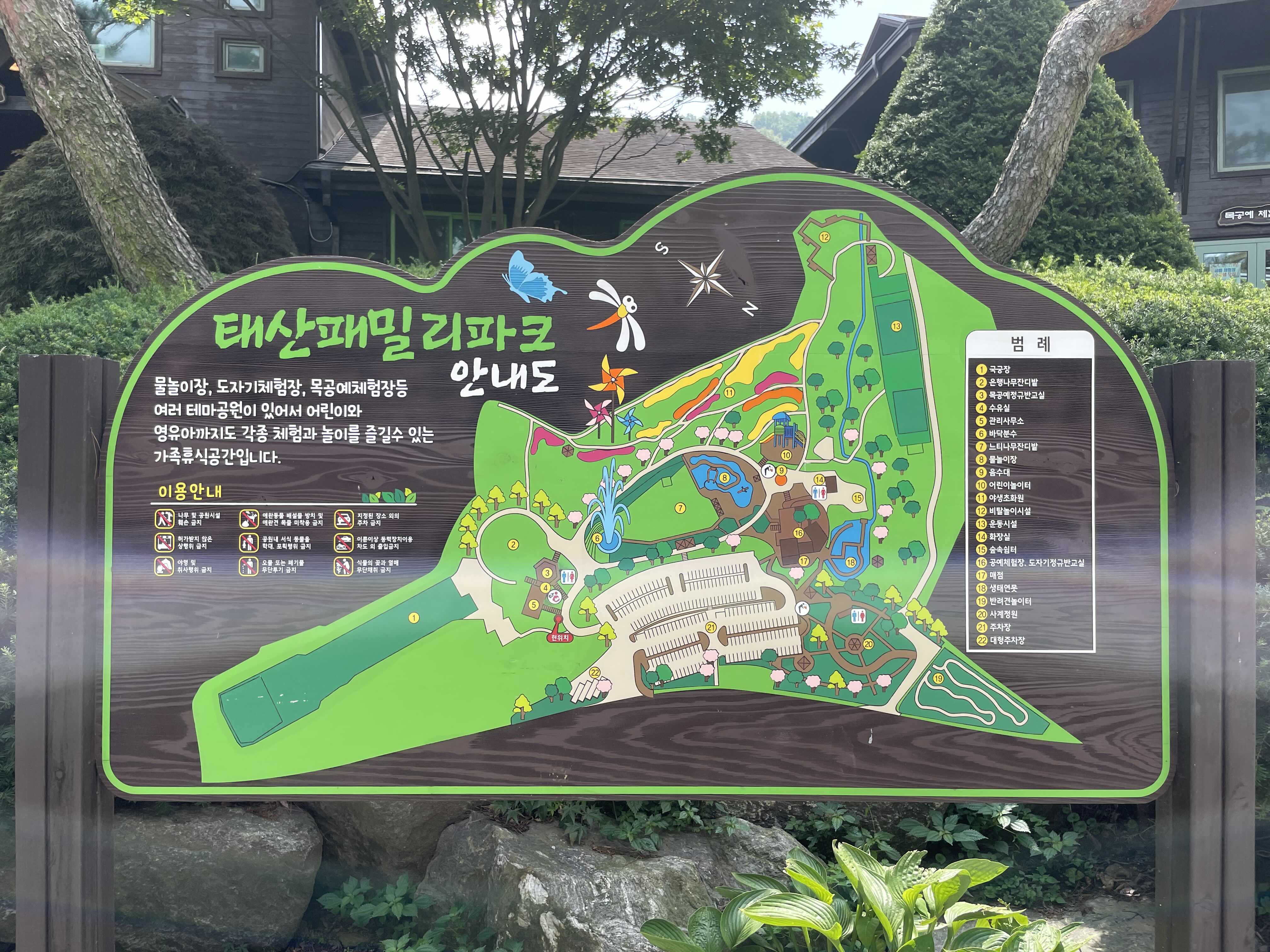김포 태산패밀리파크 전경입니다. 산 밑에 넓은 잔디 밭이 두곳 있고 물놀이장, 반려견 놀이터, 계곡, 그리고 간단한 음식을 먹을 수 있는 편의점과 공예체험관이 있습니다. 주말임에도 불구하고 주차장이 넓고 쾌적해서 주차하는데 불편함이 없었습니다. 주차비는 소형 2,000원입니다. 경차라면 천원만 내면 하루종일 주차 가능합니다. 역기 공공기관에서 운영하는 만큼 저렴하고 시설도 깨끗합니다.