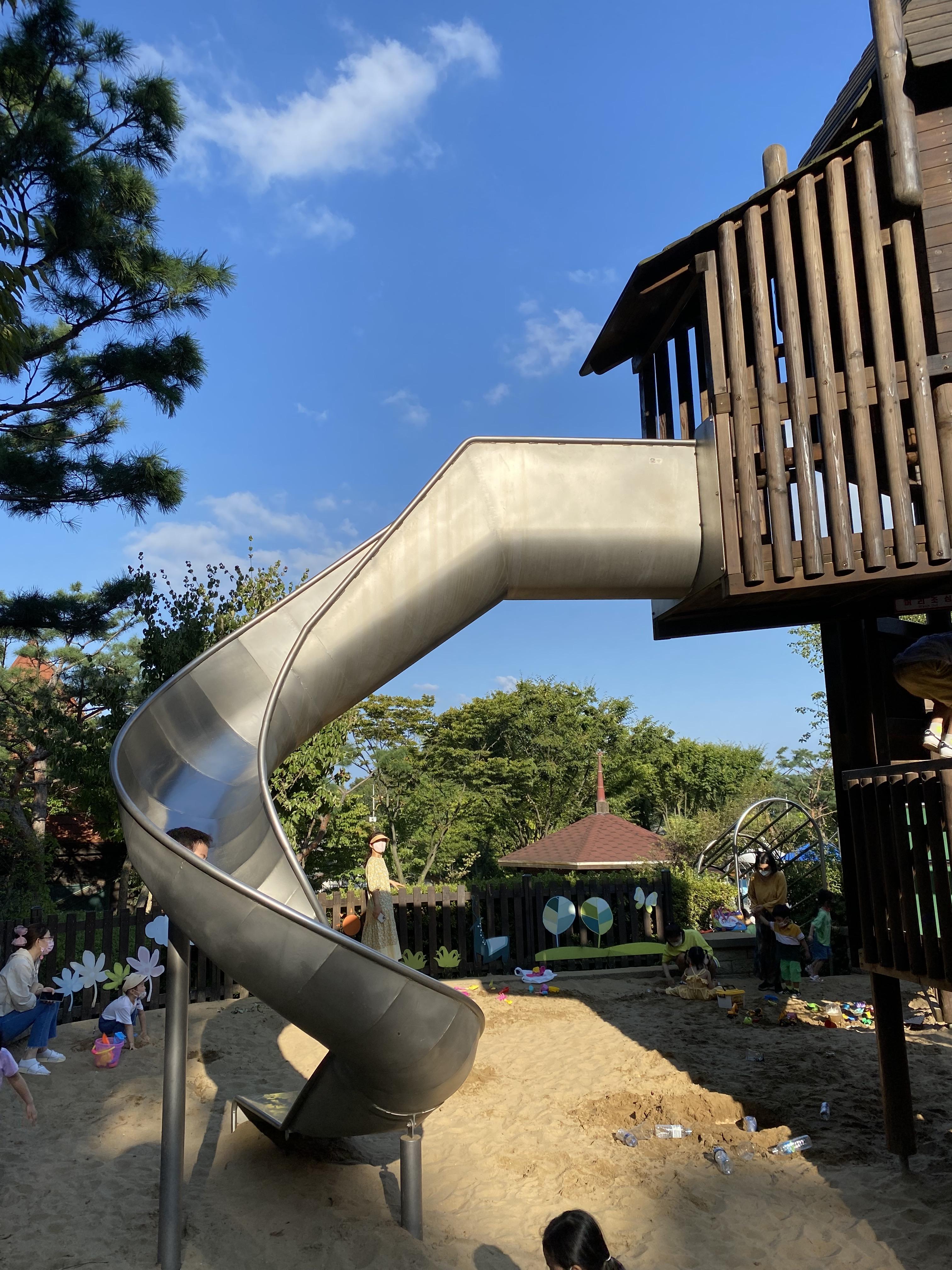 보시는 것처럼 미끄럼틀 각도나 높이가 상당합니다. 너무 어린 아이들은 놀기 힘들 것 같고, 취학 아동 수준이 적당합니다.