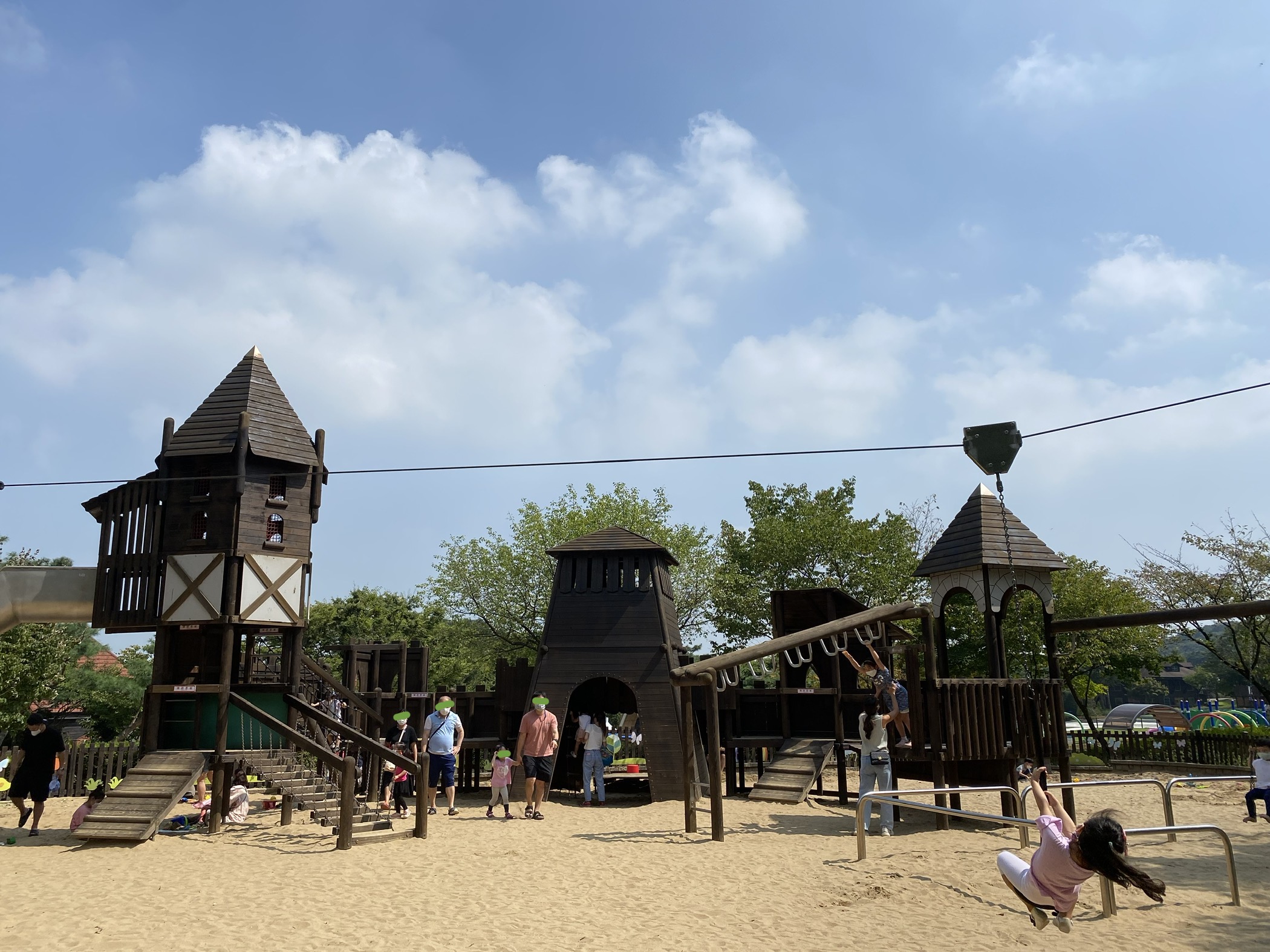 어린이 놀이터에서 놀면 시간이 금방갑니다. 모래놀이를 한참하다가 놀이기구도 탑니다. 짚라인도 있는 통나무 놀이터는 꽤 난이도가 높습니다. 아직 우리아이들은 어려서 이용 못할 줄 알았는데 5살 첫째는 혼자도 미끄럼틀도 많이 타면서 잘 놀더군요.