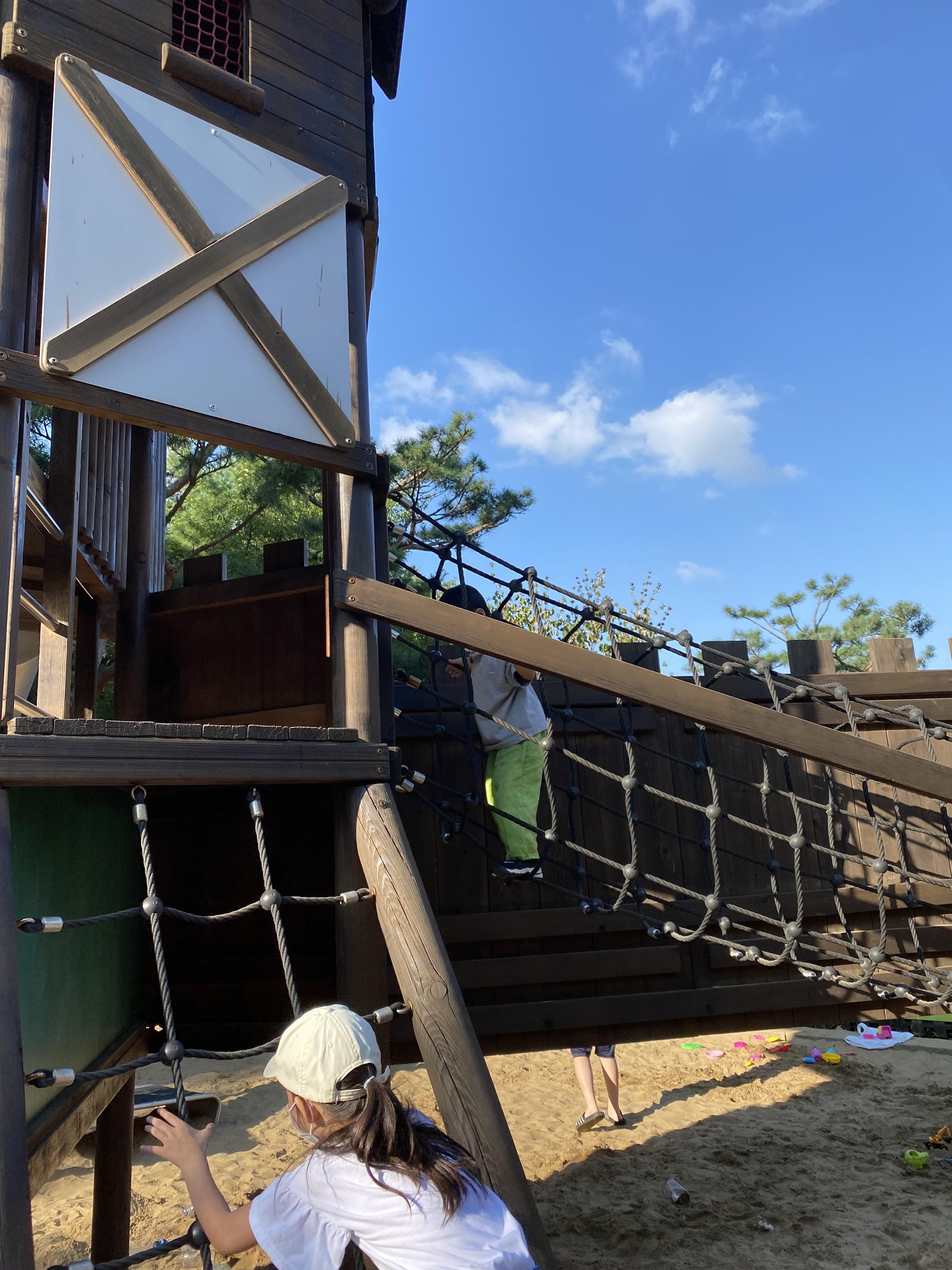 이렇게 그물을 타고 올라가야 미끄럼틀이 있습니다. 저걸 이용 못하면 애초에 오를 수도 없죠. 상당히 잘 만든 놀이터입니다.