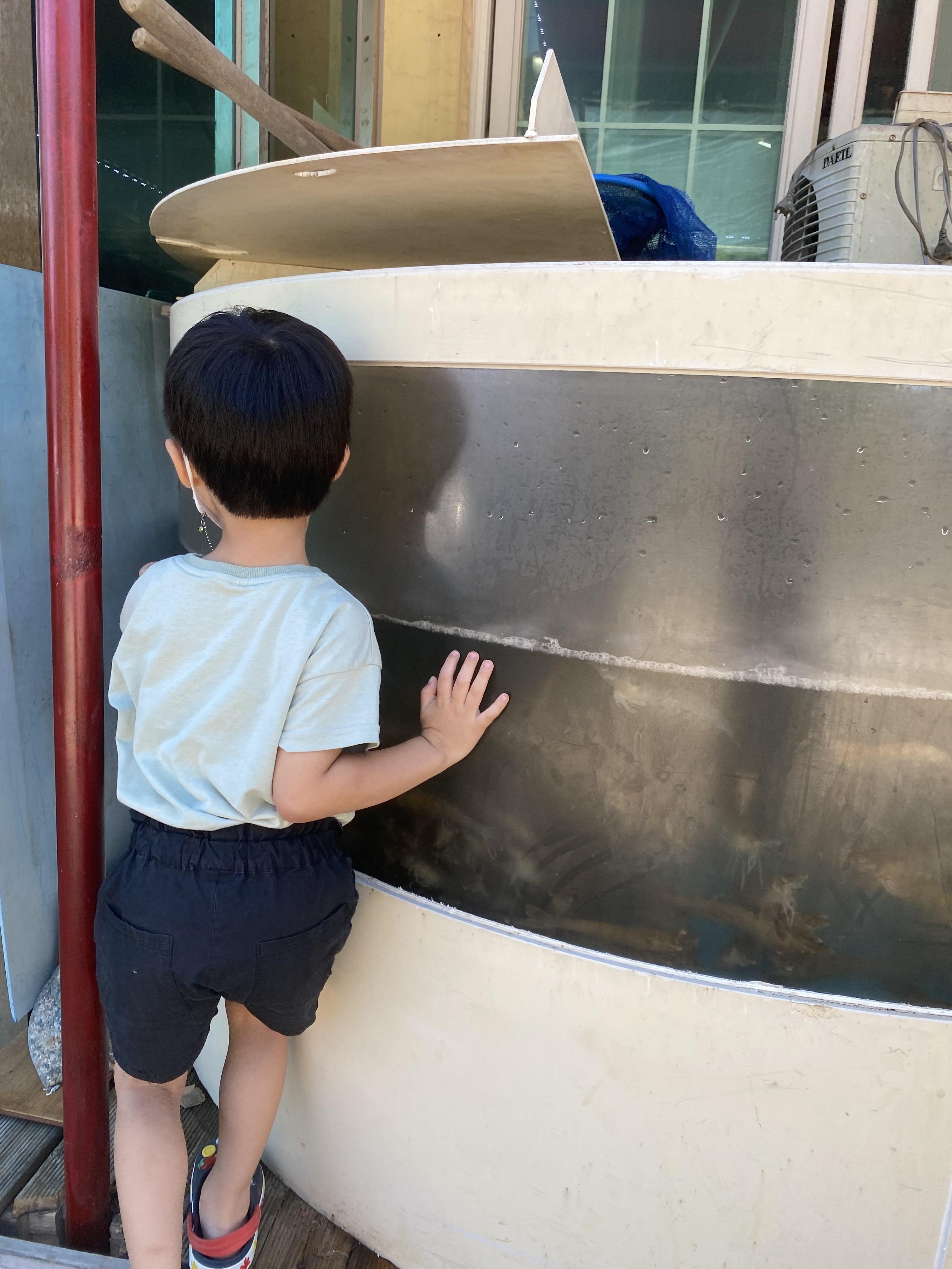 수족관만 보이면 아이들은 일단 다가갑니다. 물속에 사는 생물들을 보는 걸 좋아하죠. 물론 먹는 것도 좋아합니다.