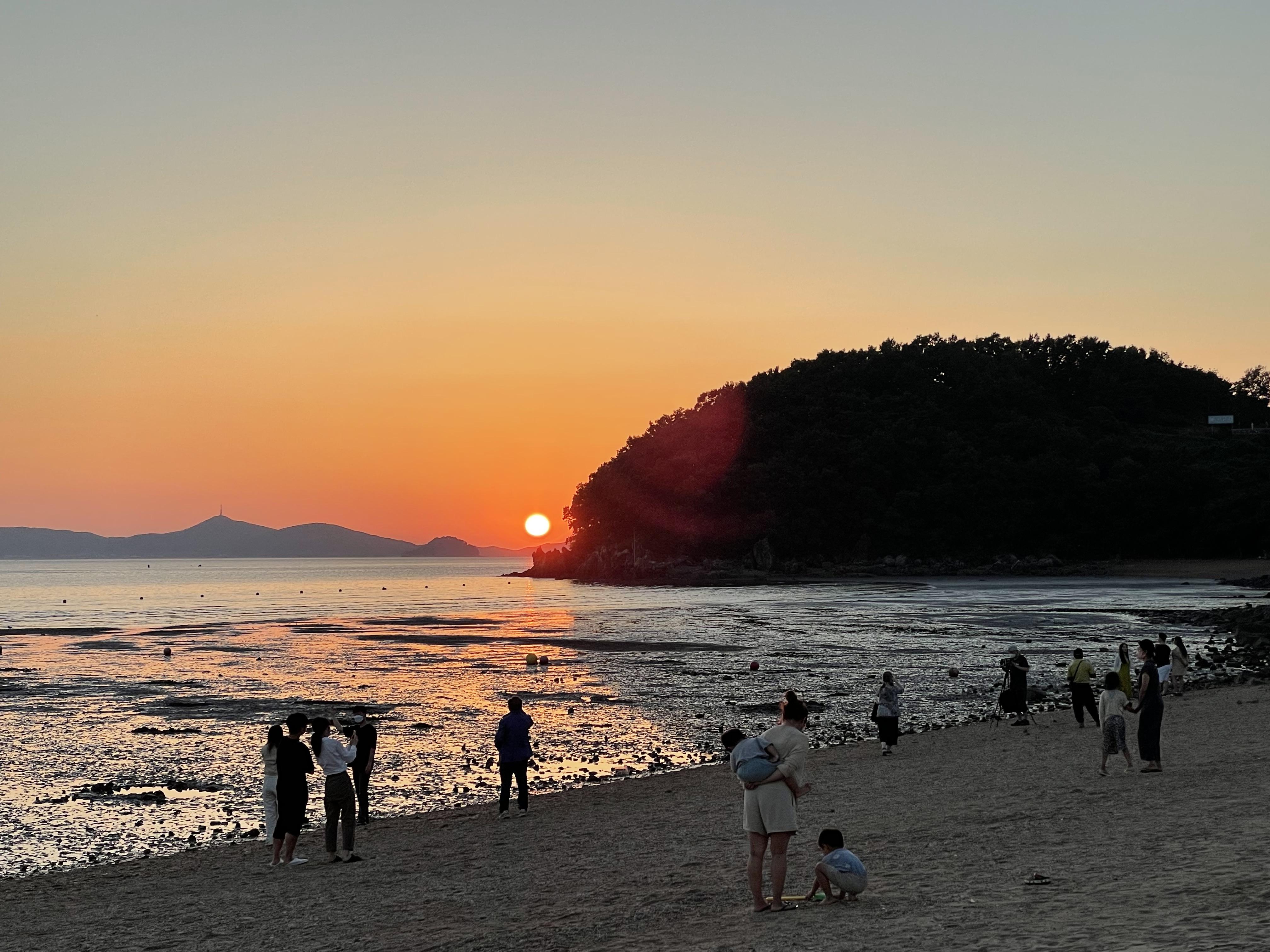 동해바다에는 일출이 있다면 서해에는 낙조가 있죠. 저물어가는 해와 석양을 보니 운치가 있습니다. 많은 사람들이 나와 사진을 찍고 있었습니다. 동막해변보다는 조금 멀지만 한시간만 더 투자하면 한적하고 멋있는 민머루 해수욕장이 있습니다.