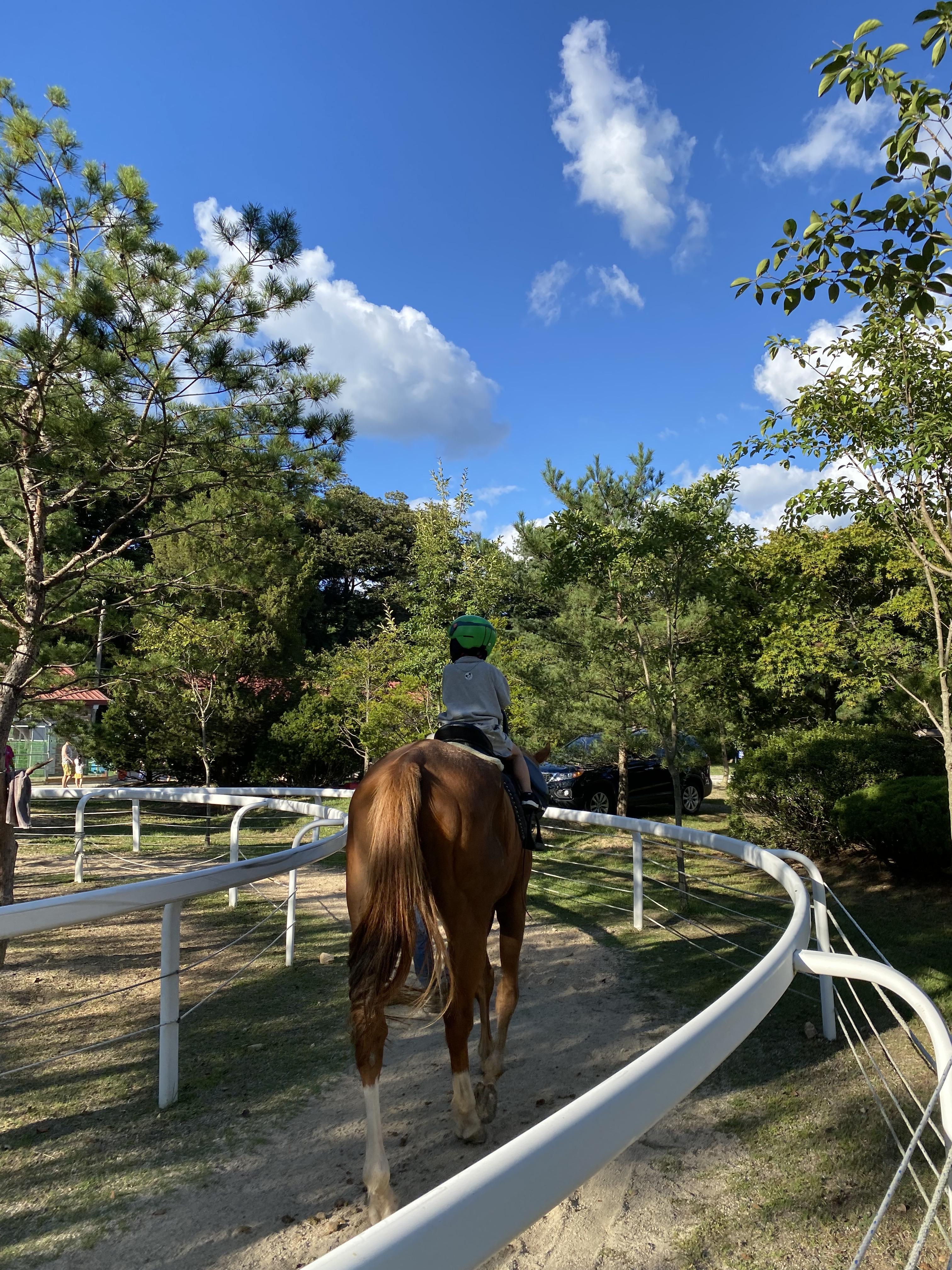 이곳에서는 승마체험도 할 수 있습니다. 가격는 당나귀는 8천원 말은 만원입니다. 캠핑장 내 매장에서 결제를 하면 티켓을 줍니다. 말을타고 백미터 가량 슬금슬금 돌아옵니다. 아이들이 무척 좋아합니다.