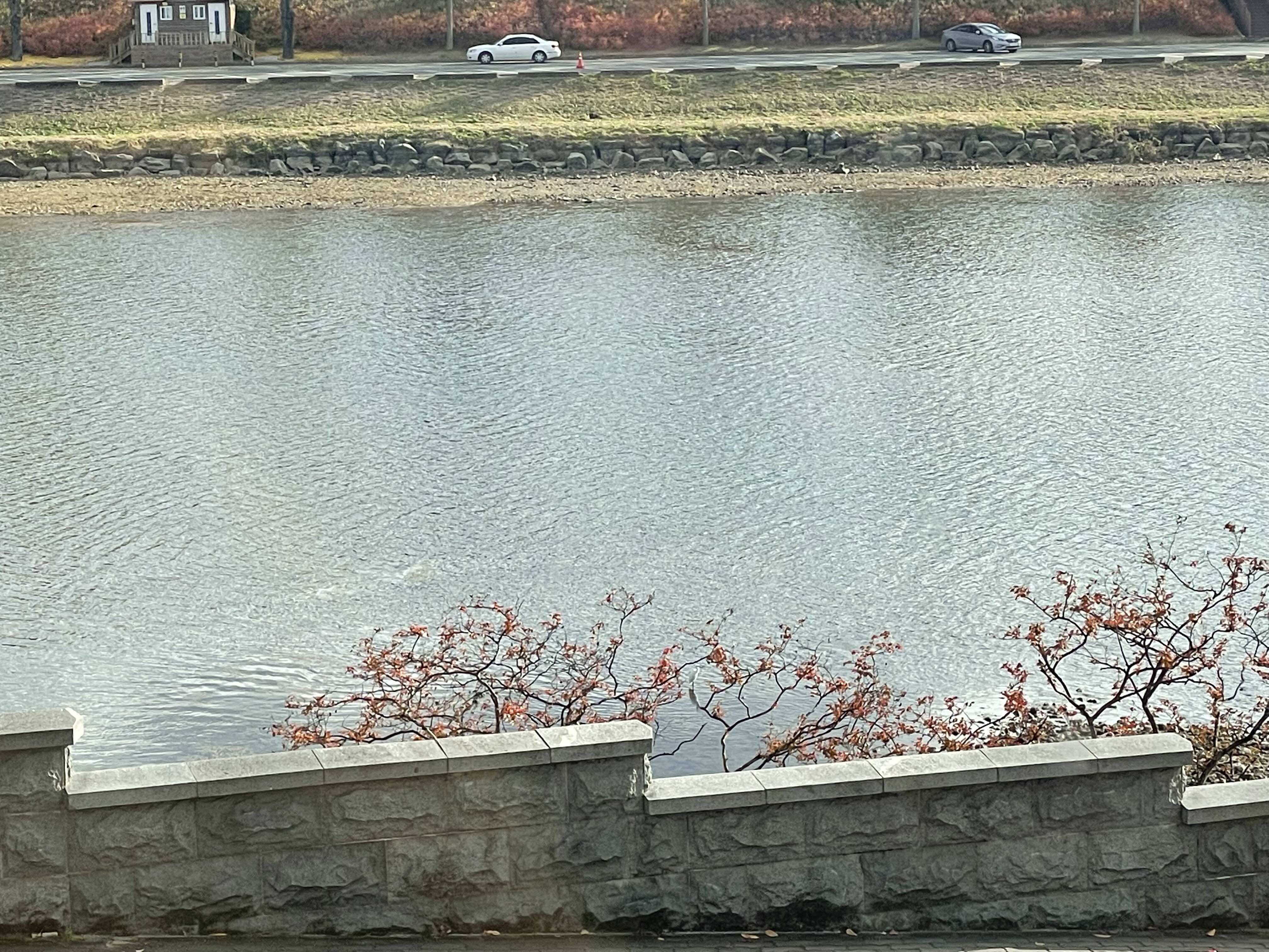 아침에 일어나서 호텔 조식을 간단하게 챙겨먹고 바로 앞에 있는 밀양 강으로 향했습니다. 호텔 아리나 앞에 있는 밀양 강은 가볍게 산책하기에 좋습니다. 나무들이 있는 숲 사잇길을 조금 걸어가다 보면 얌전하게 흐르는 강물을 볼 수 있습니다. 또 핑크뮬리들이 있어 사진을 찍기도 좋죠.