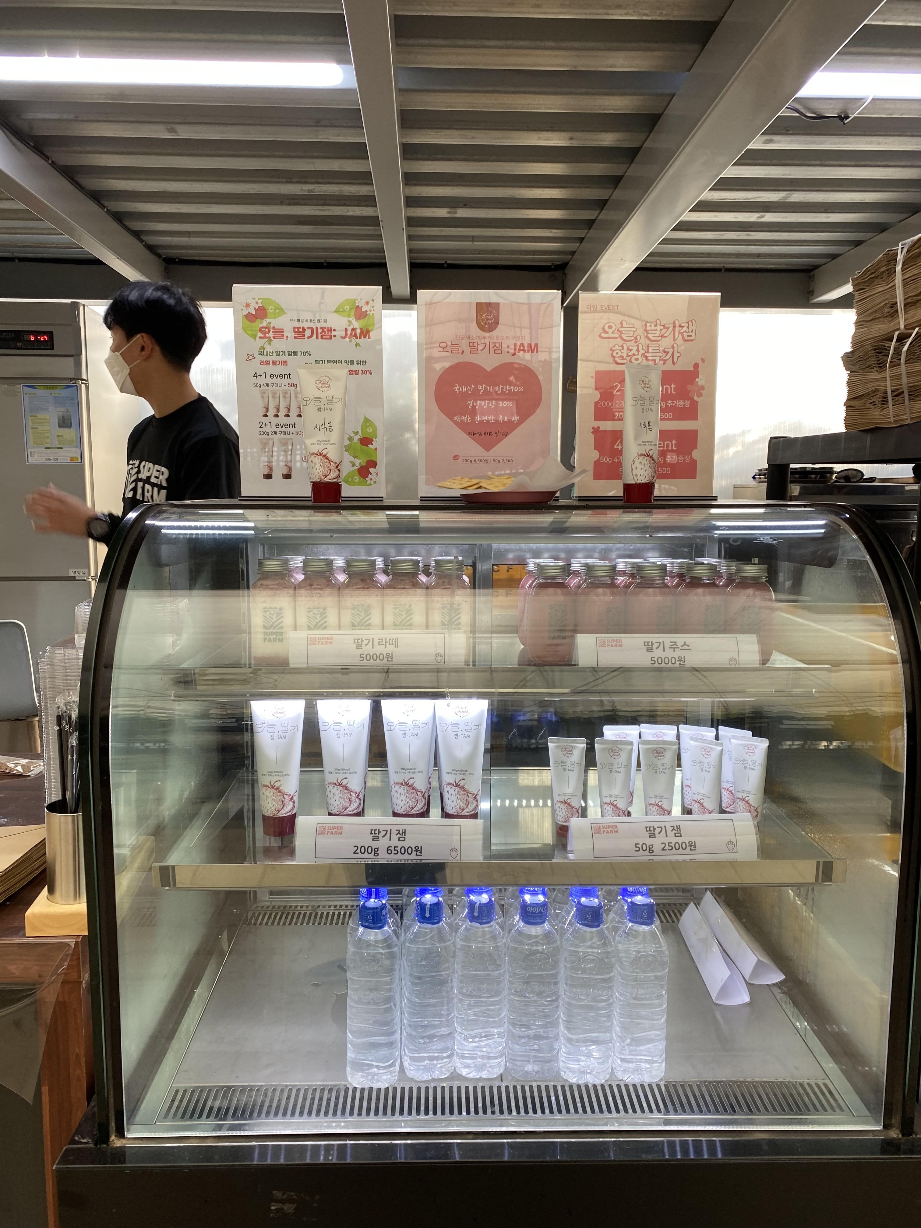 안에서 커피류는 안 파는 것 같습니다. 10시 30분 타임을 가서 조금 피곤해서 카페인을 섭취해보고자 했는데 카페인이 들은 음료는 없었습니다. 역시 친환경 딸기 농장 답습니다.