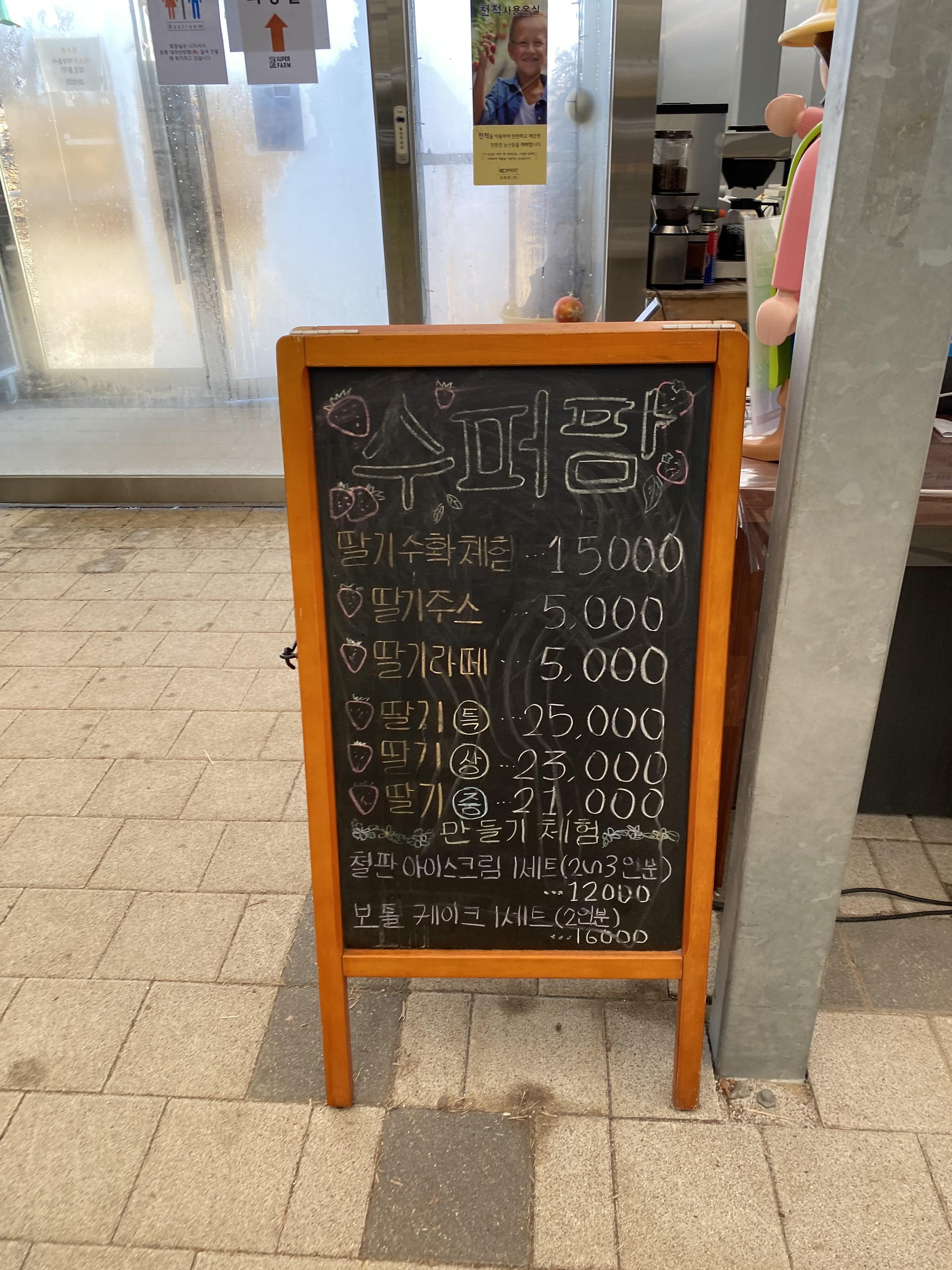 겨울이 왔습니다. 밖에 나가서 활동하기 힘든데요. 그래서 실내에서 딸기따기 체험을 할 수 있는 부천 수퍼팜에 다녀왔습니다. 무엇보다도 슈퍼팜은 서울 근교에 있기 때문에 접근하기가 쉽습니다. 다만 예약이 치열하기 때문에 네이버 예약에서 사전예약은 필수입니다. 저희는 딸기따기 체험와 후렌치파이 만들기 체험만 예약하고 갔습니다. 딸기따기 체험을 하면 기본적으로 후렌치파이 만들기 체험을 할 수 있습니다. 그 외에 딸기 컵 케이크만들기 체험과 철판 아이스크림만들기 체험도 할 수 있습니다.