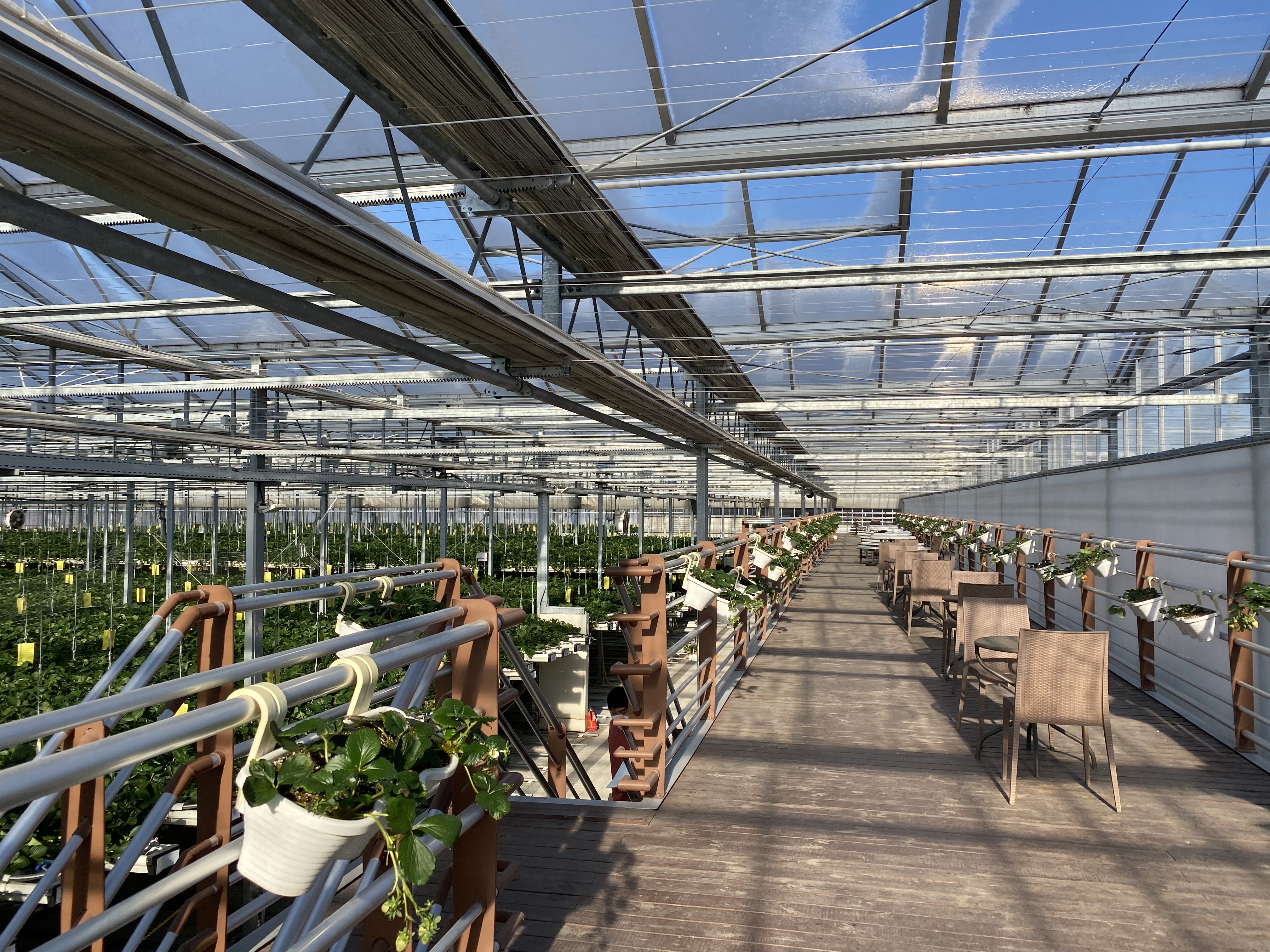 딸기체험을 하러 들어가기 전에 수경재배하는 딸기들이 자동으로 아이의 눈높이 정도로 높이가 맞춰집니다. 그래서 아이들이 딸기를 따기 쉽죠. 어른은 잘 보이지 않을 수 있는 아랫쪽의 딸기도 아이의 눈높이에서 보면 잘 보입니다. 보시는 것처럼 높이가 딱 맞기 때문에 쉽게 딸 수 있어요.