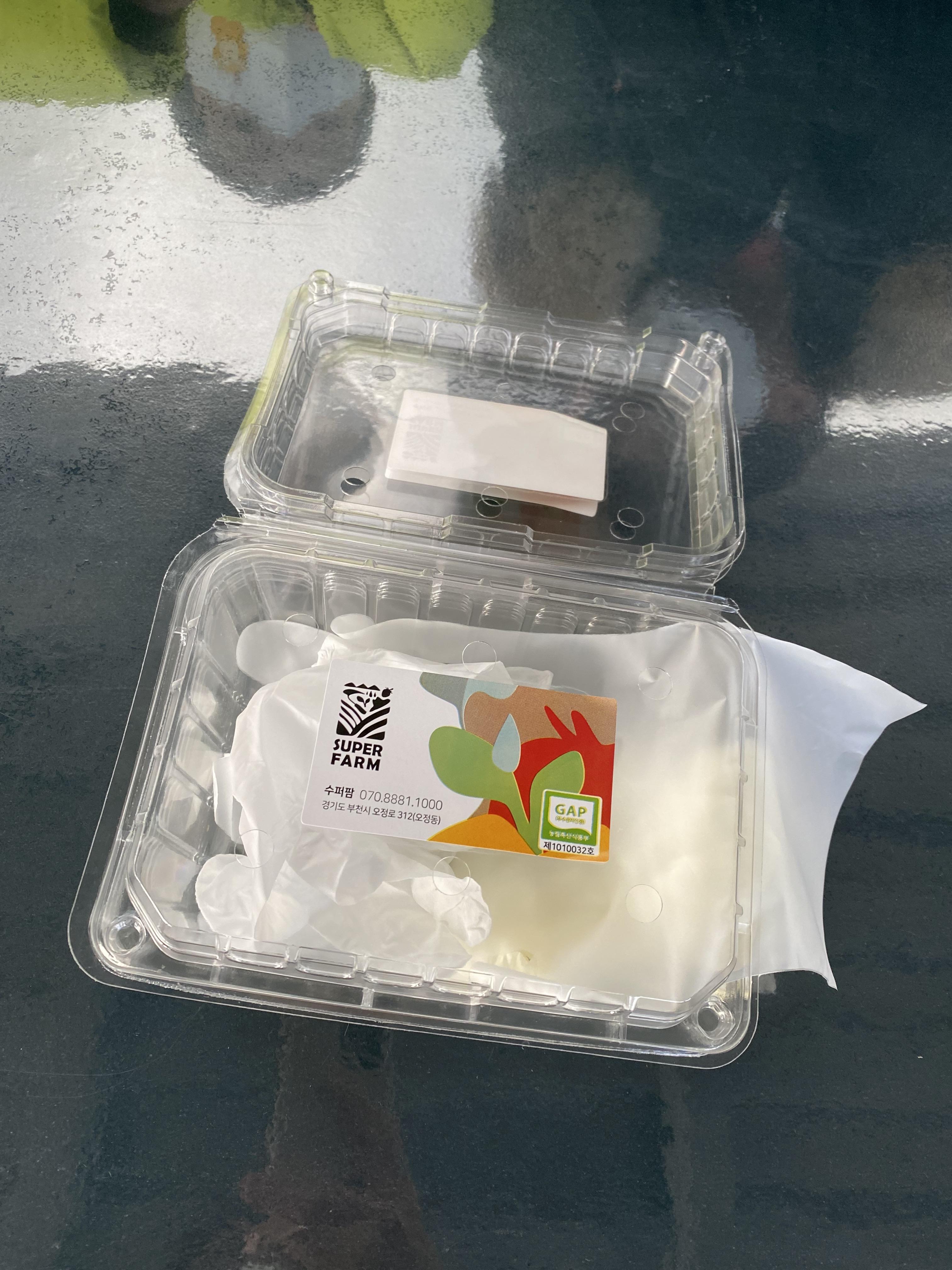 딸기체험을 하려면 딸기 케이스를 하나씩 받습니다. 여기에 딸기를 500그람을 따라고 하는데 생각보다 500그람이 적더라고요. 꽉 채우면 바로 넘어버립니다. 500그람을 정확하게 맞추면 천원짜리 쿠폰을 주십니다. 저도 맞춰보고 싶었는데 딸기를 많이 따겠다는 욕심이 지나친 나머지 500그람을 넘겨버리고 말았습니다.