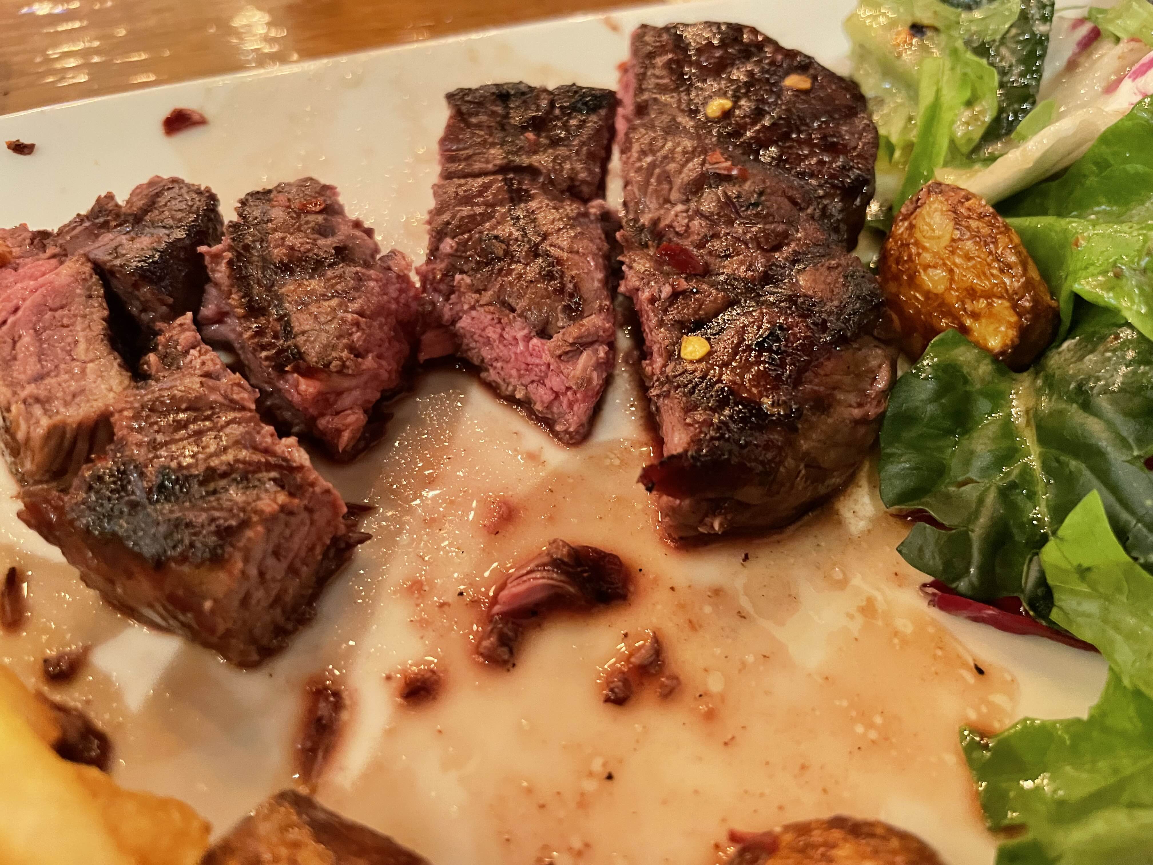 이건 런치 스테이크입니다. 굽기조절은 딱히 말씀드리지 않았는데 아이가 먹기 괜찮은 정도의 수준으로 나왔습니다.