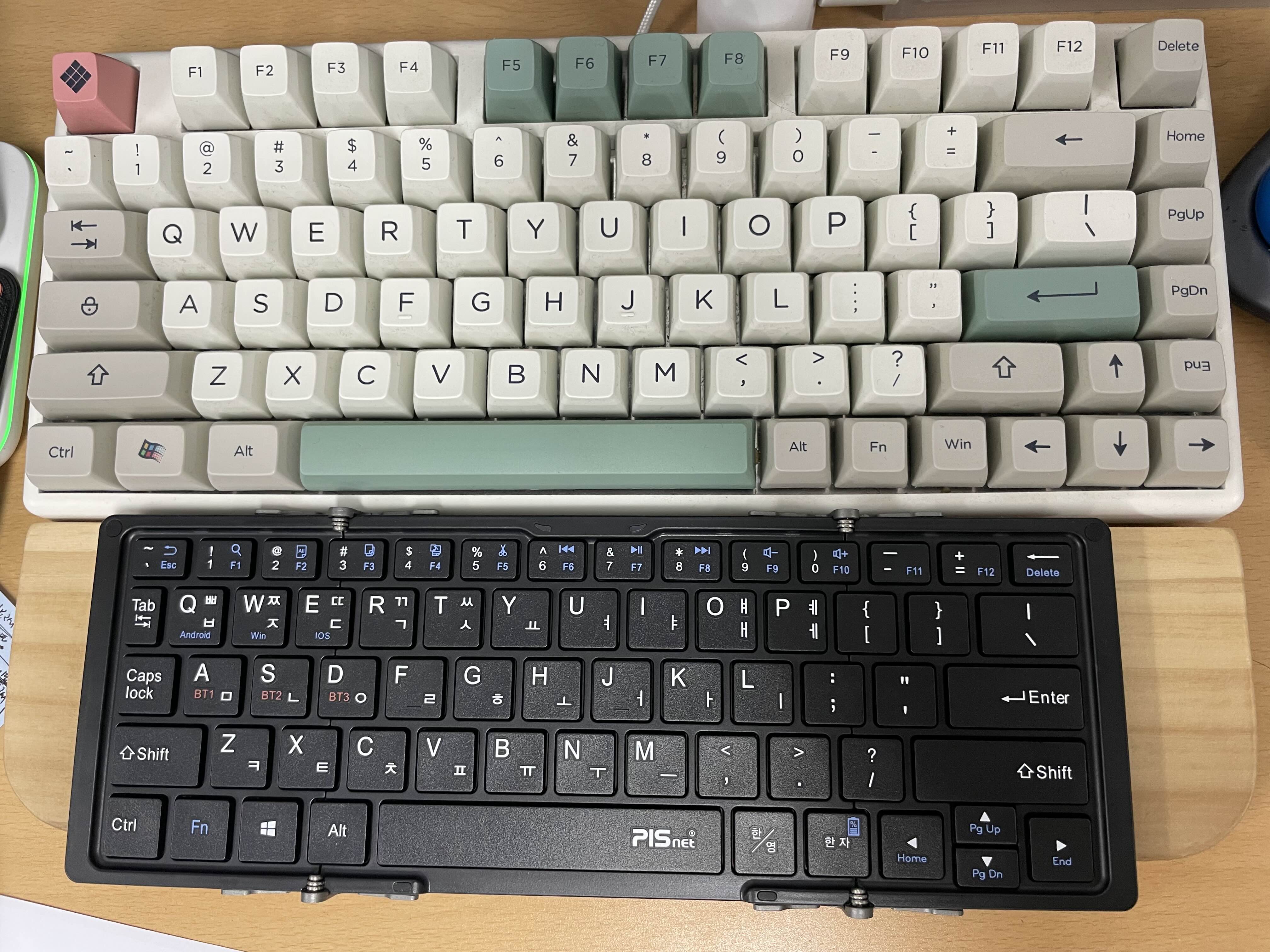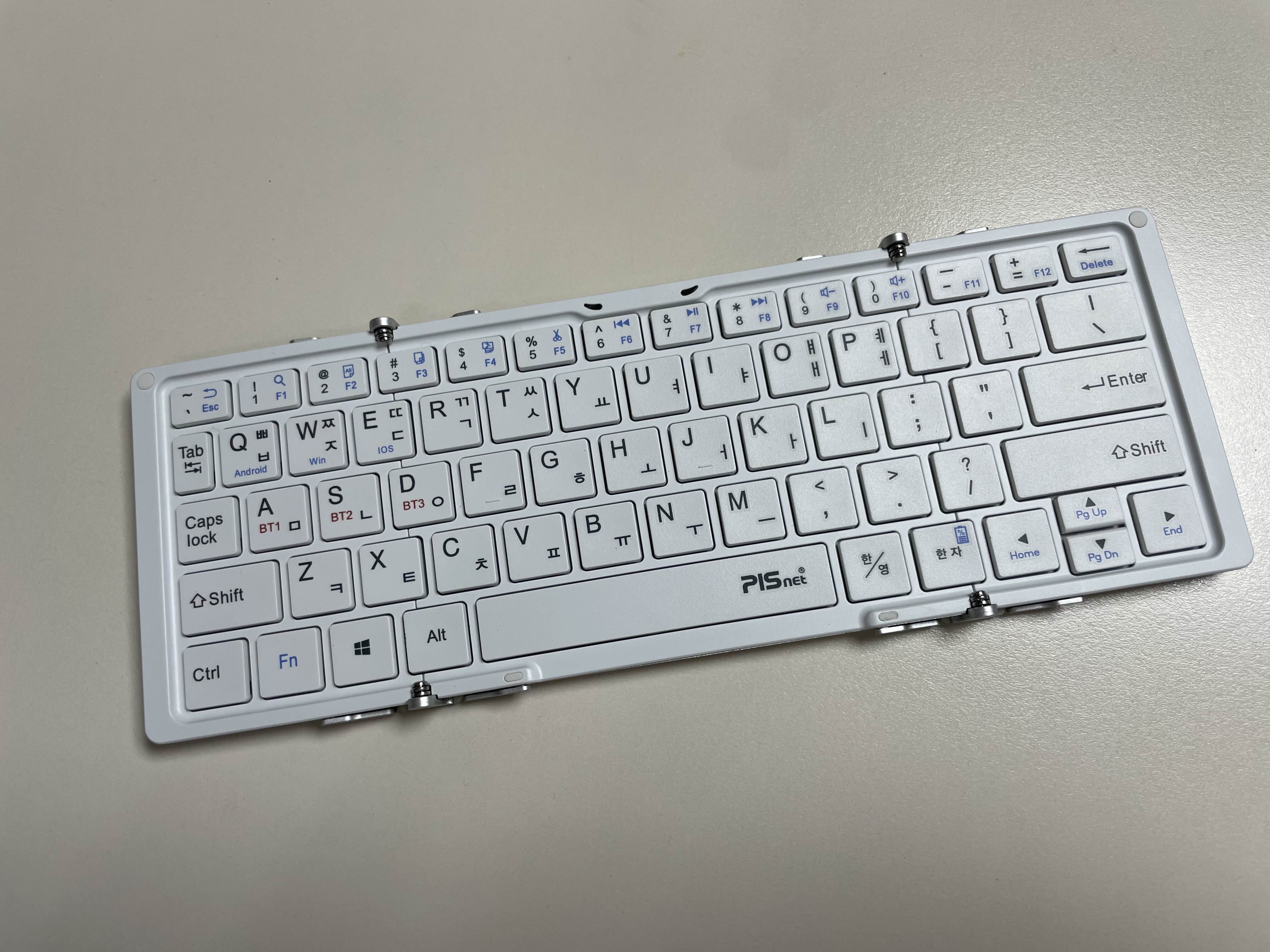 두번째는 중간에 경첩이 들어가면서 ‘ㅠ’를 누를때 습관적으로 왼손을 사용했던 제가 억지로 오른손을 활용했어야 했다는 점입니다. 큰 단점이 아니라고 볼 수 도 있지만 실제로 사용해 보시면 엄청나게 큰 단점입니다. 그러던 도중에 접이식이라는 정체성은 그대로 가지고 있으면서 키 배열이 변태적이지 않은 피스넷 폴더를 알게 되었죠.