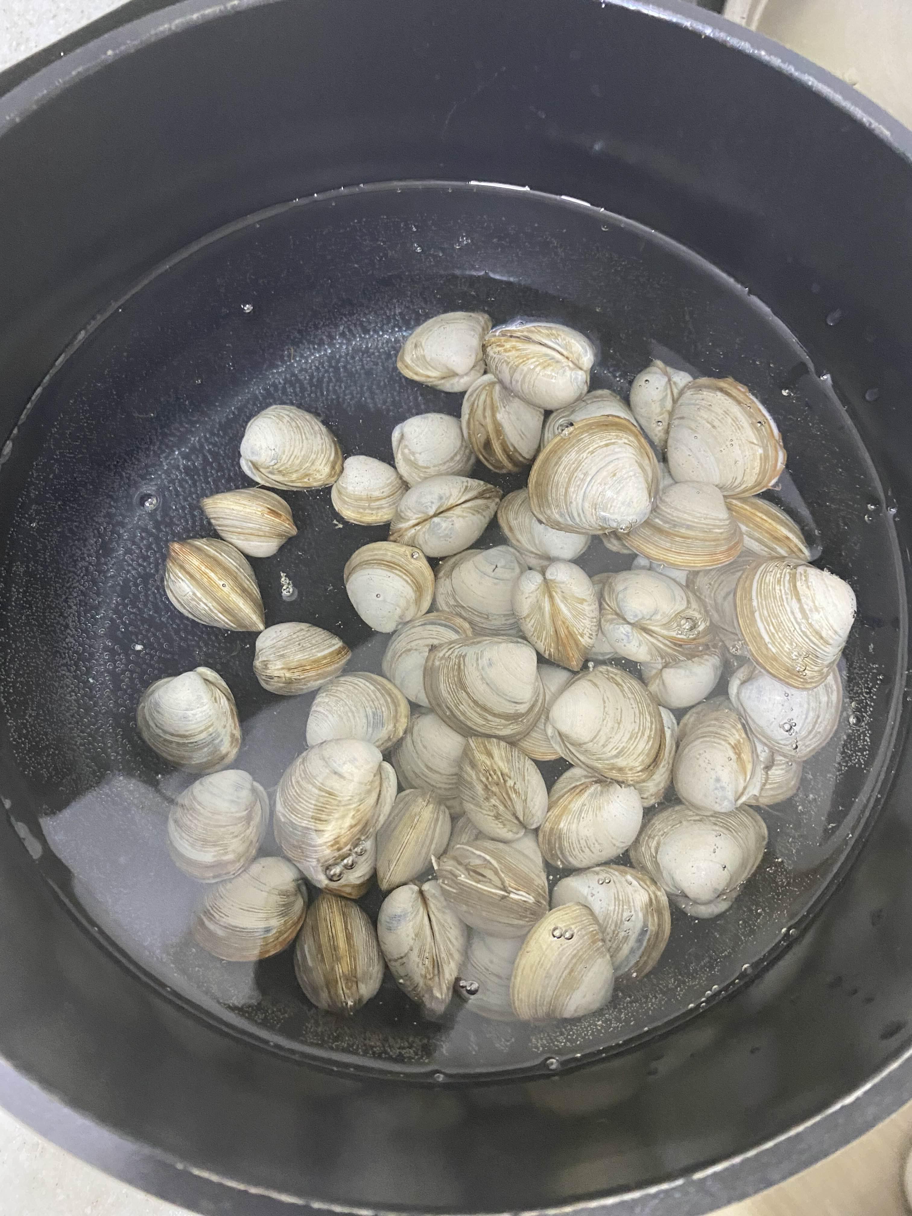 곰표 동죽칼국수를 끓이기 위해서는 우선 물 550ml를 넣고 동죽을 넣고 끓여야합니다. 라면 하나를 끓이는 물 양인데 여기에 채수육수까지 더하면 국물의 양이 상당히 많습니다. 동죽은 이미 삶아서 나온거기 때문에 식중독의 위험도 적습니다만 한번 팔팔 끓여보도록하겠습니다.