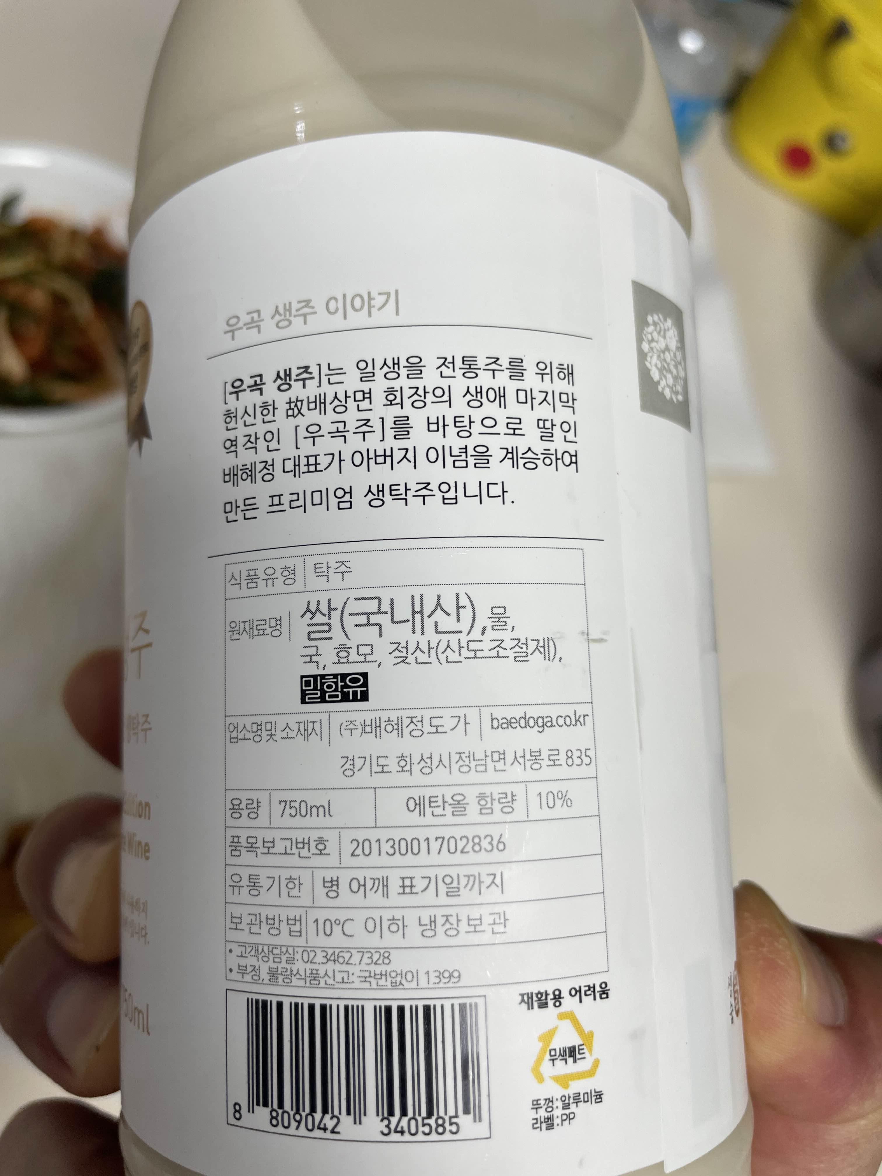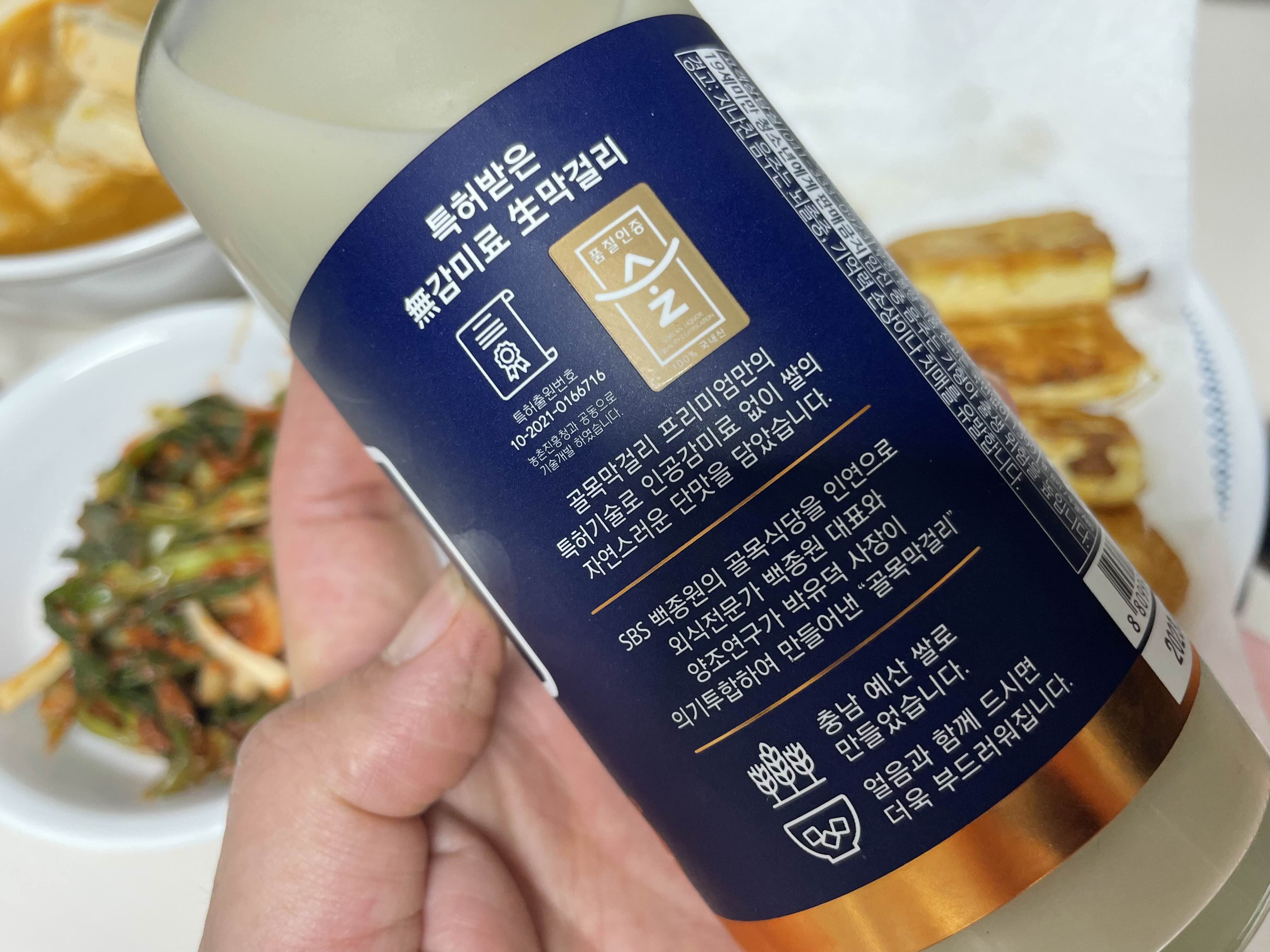 생막걸리답게 시원하게 보관을 해야합니다. 인공감미료가 없이 쌀만으로 단맛을 냈다고 하는데 먹어보면 쌀의 달큰한 질감이 느껴집니다. 백종원선생님의 안목은 틀린 적이 없죠. 우리나라 쌀로 만들었다고 하니 쌀 소비가 급감하고있는 이런 시기에 사먹으면 농가에 더욱 도움이 될 것 같습니다. 자고로 우리 몸에는 우리 것, 신토불이죠.