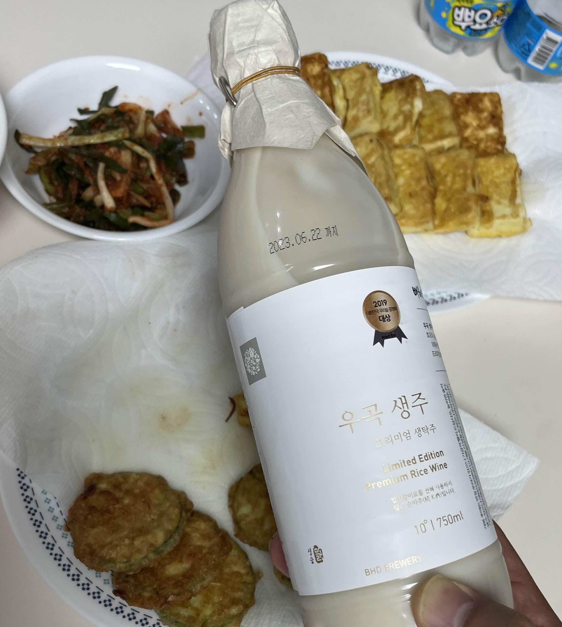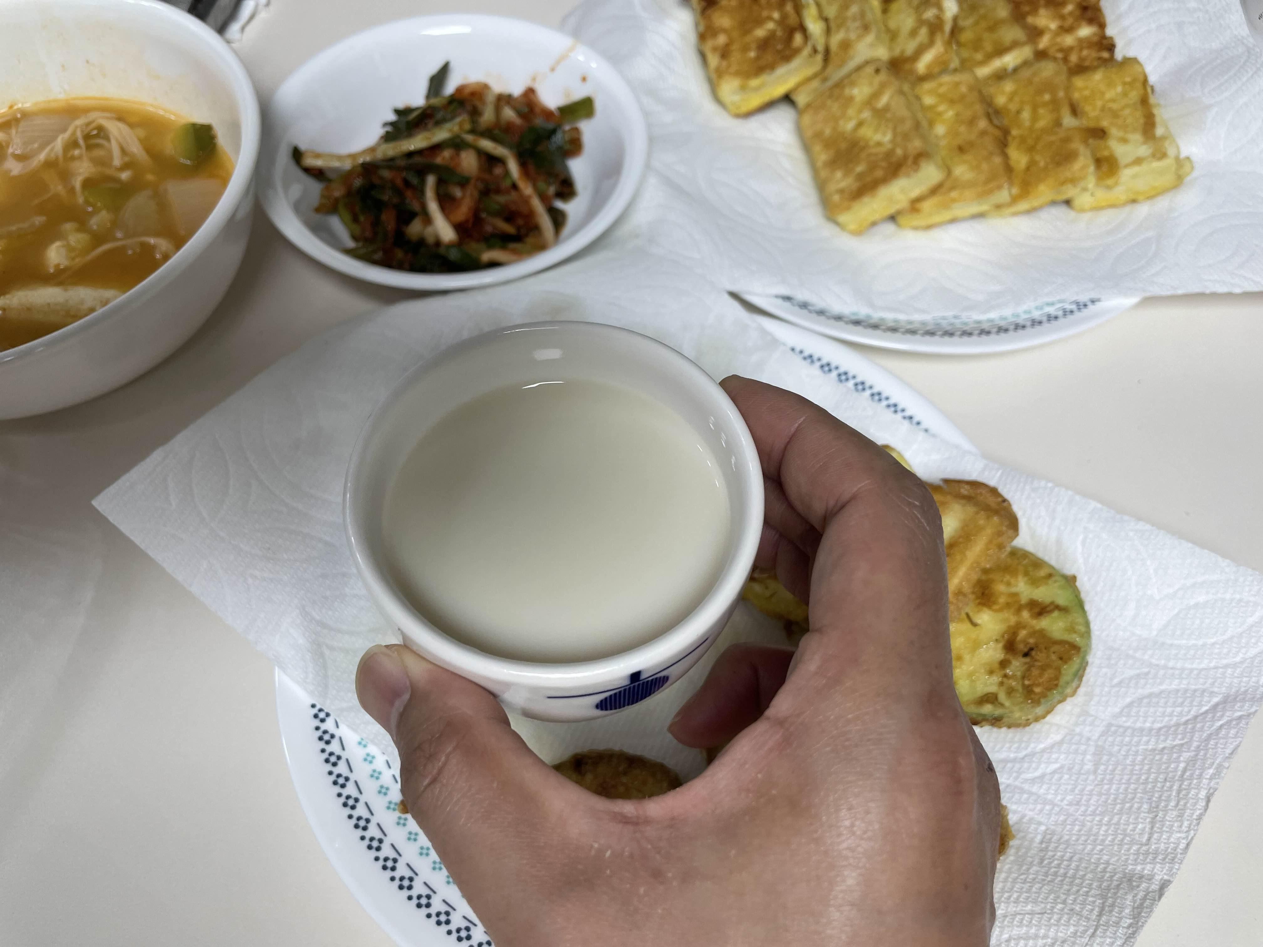 앞서 먹었던 골목양조장 프리미엄 막걸리처럼 진합니다. 그런데 더 상쾌하고 경쾌한 느낌이 나죠. 도수도 아까보다 2도 정도 낮은 10도입니다. 아까 먹었던 것에 비해서 가벼운 느낌이기 때문에 비가오는 주말에 전을 부쳐서 먹기 좋은 막걸리입니다.