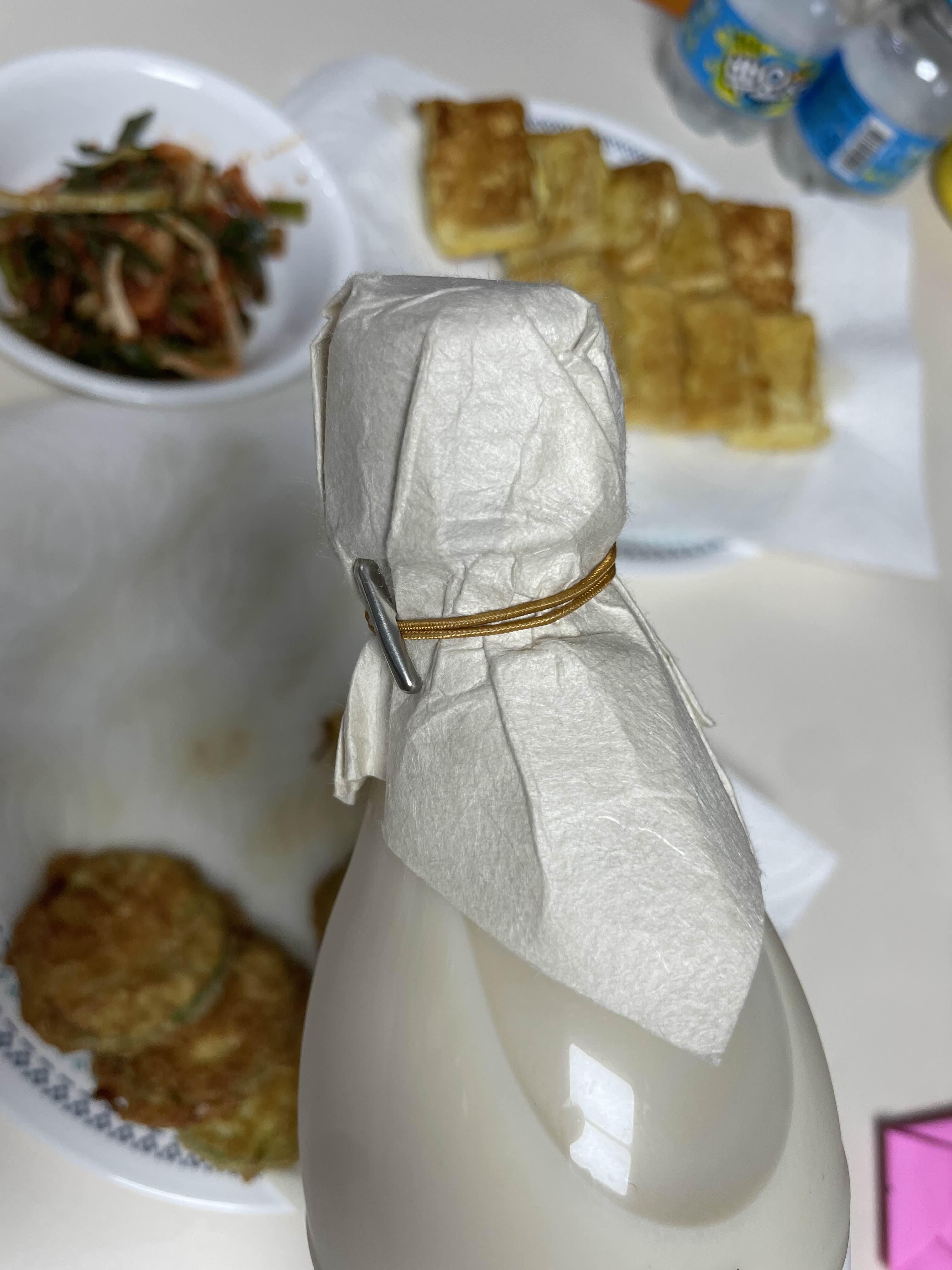 막걸리라는 타이틀이 아닌 생주라는 이름을 썼습니다. 뭐 그래도 그냥 막걸리라고 보시면됩니다. 프리미엄 이미지를 살리기 위해서 입구를 한지로 봉해놨습니다. 별거 아니지만 이런 세심한 포장에서 고급스러음을 느낍니다.