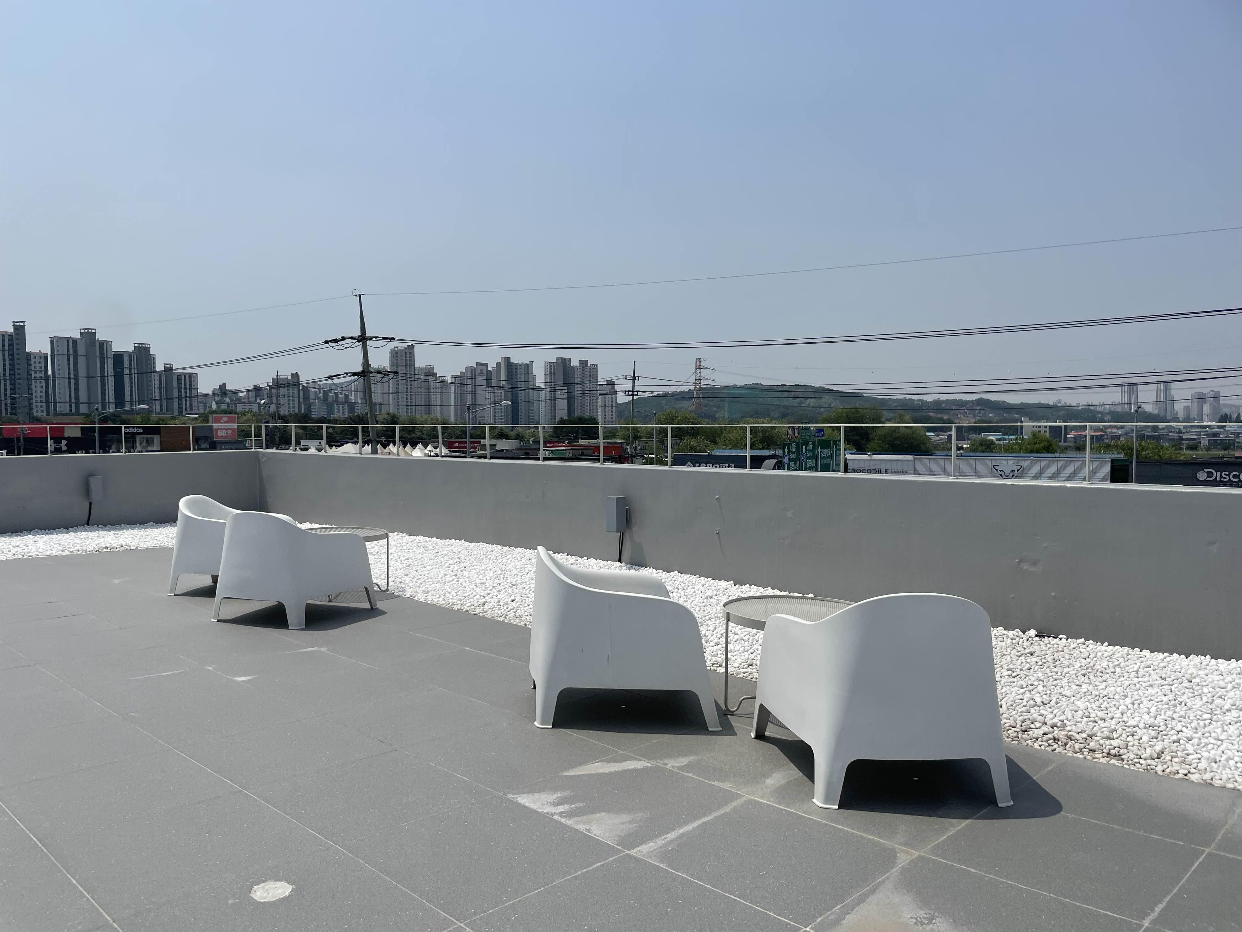 옥상 앞쪽으로는 아기자기한 의자들이 있습니다. 이쪽은 파라솔도 없어서 간단하게 야외 구경만 하기에 좋은 곳입니다. 이제 햇볕이 뜨거워 지는데 해를 가릴 만한 무언가가 있어야하지 않을까 하는 생각이듭니다.