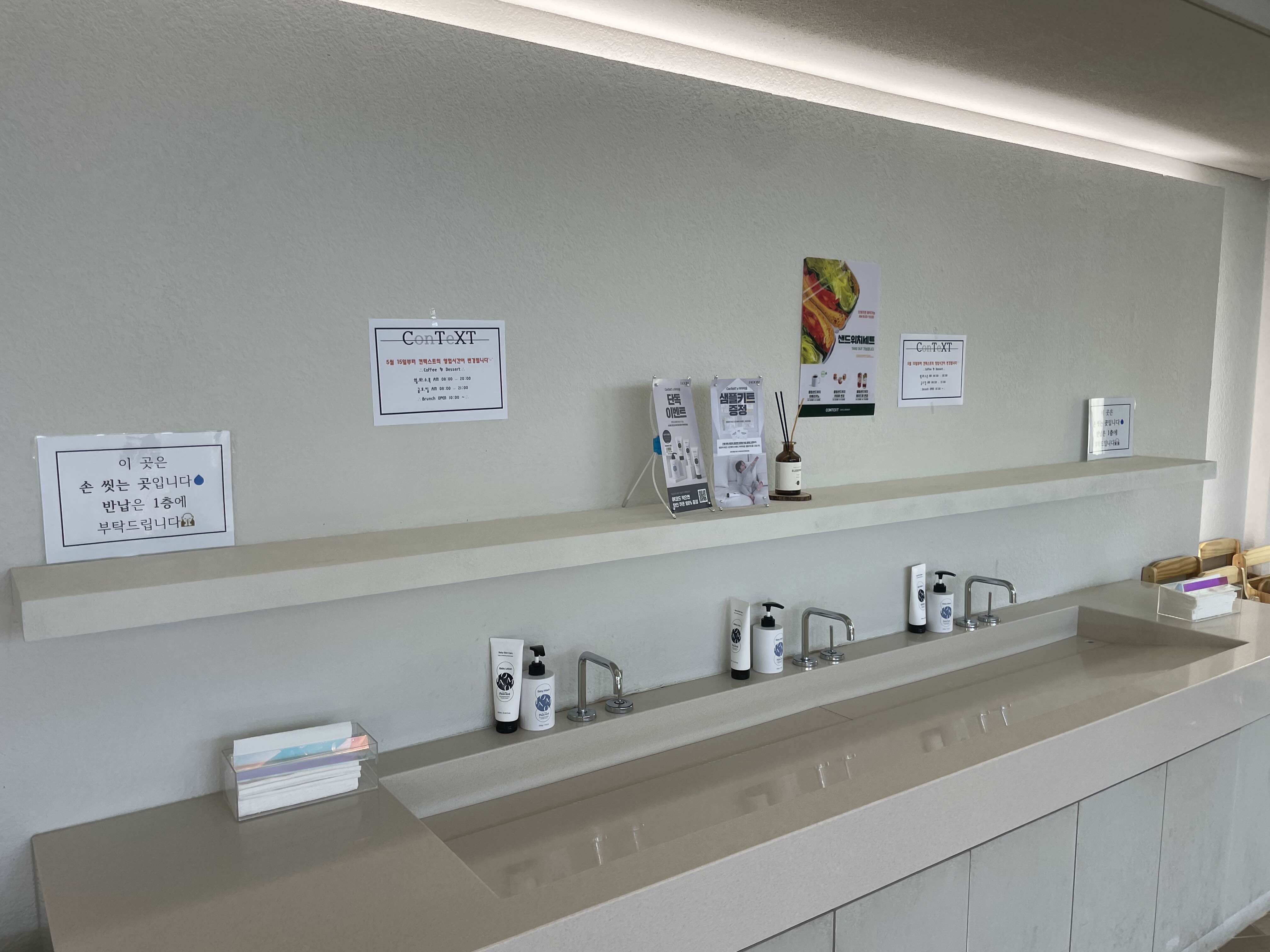 2층에는 손을 씻을 수 있는 공간도 따로 마련이 되어있습니다. 코로나 시기에 만들어진 곳인지 위생에 신경을 쓰는 모습이 좋습니다.