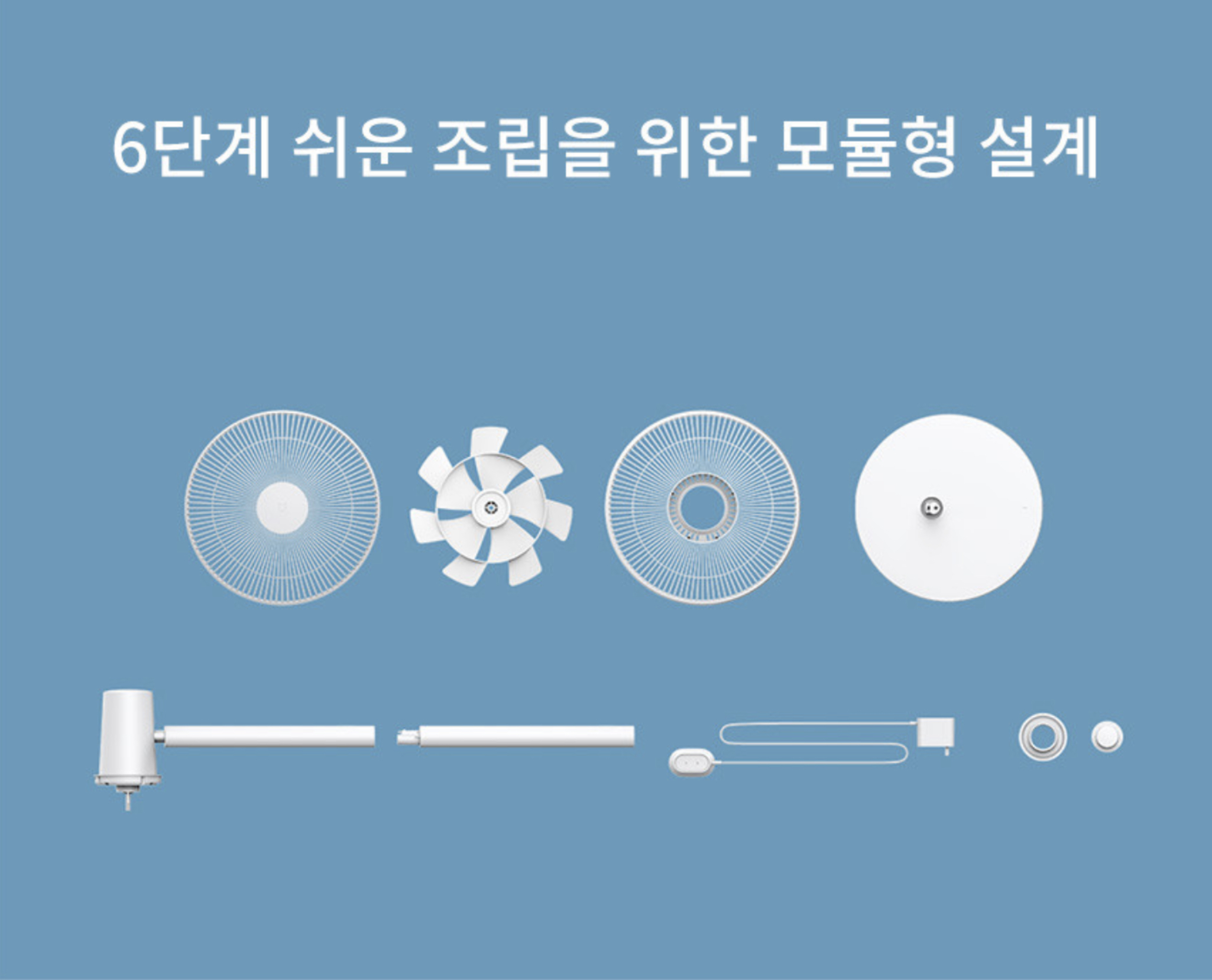 설치는 상당히 간단합니다. 굉장히 직관적인 모습을 가지고 있는 10개의 부품으로 이뤄져 있습니다. 팬의 뚜껑을 덮을 때 나사를 하나 조이는 것을 빼면 원터치로 똑딱똑딱 조립할 수 있습니다. 힘이 없는 어린이도 손쉽게 조립할 수 있습니다. 다 조립하면 기둥 높이만 1미터니 상당히 높습니다.