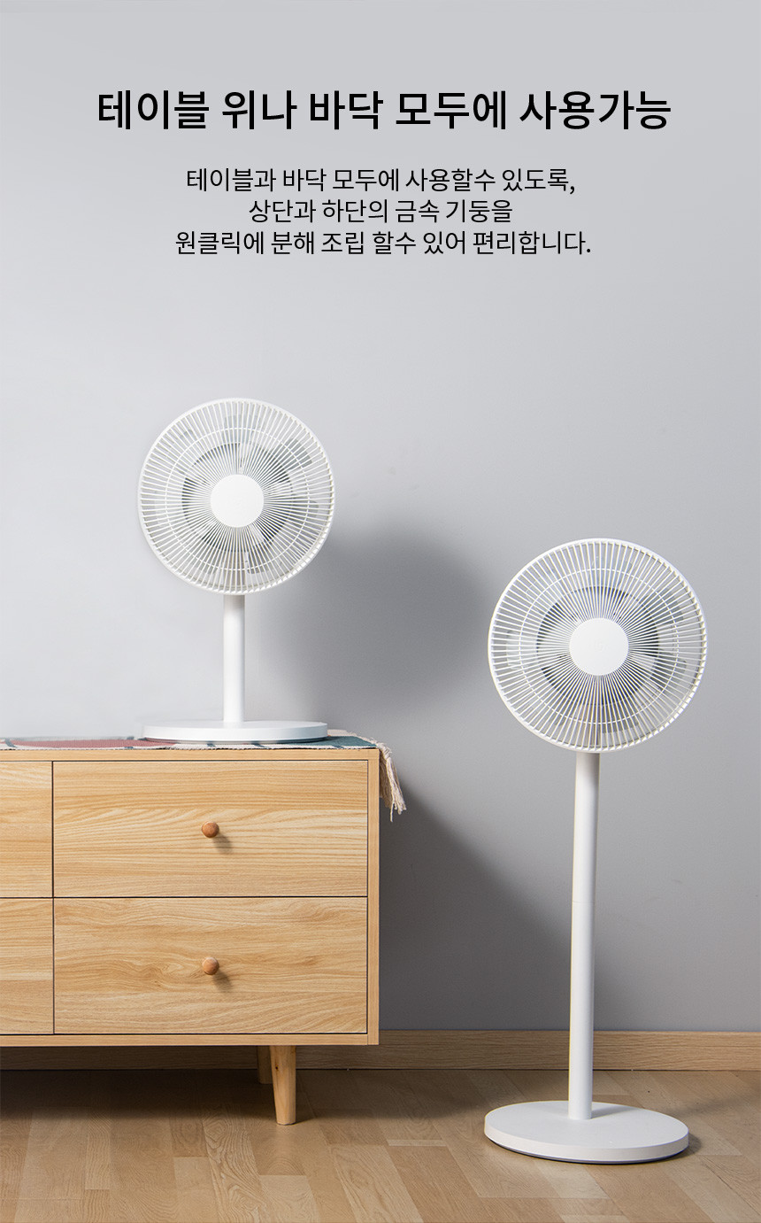 높이는 총 두단계로 나눠서 사용할 수 있습니다. 옛날선풍기가 사실 높이 조절에서는 더 디테일했었죠. 샤오미 선풍기는 중간이 없습니다. 높은 건 생각보다 높고 낮은 건 생각만큼 낮습니다. 낮게 해서는 테이블에 놓고 높게 해서는 그냥 세워 놓으라는 건데, 예전과 달리 요새는 입식 생활이 익숙해졌기 때문에 이정도 높이는 되어야 소파에서 시원한 바람을 맞아볼 수 있을 것이라는 생각이 들었습니다.