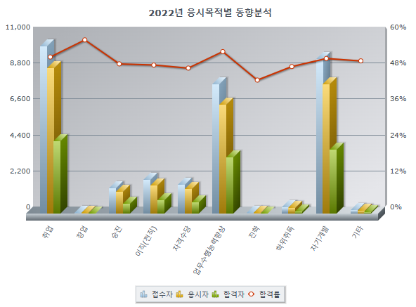 취득 목적은 각양각색입니다. 저는 뭐 다른 자격을 취득하려고 취득하였는데 설문에는 그런 내용은 없습니다. 대부분 취업이나 업무수행능력향상, 자기계발 같은 의도로 취득하는 자격입니다. 지금 준비하시려는 분도 이 범주에서 크게 벗어나지 않을 것이라는 생각이듭니다.