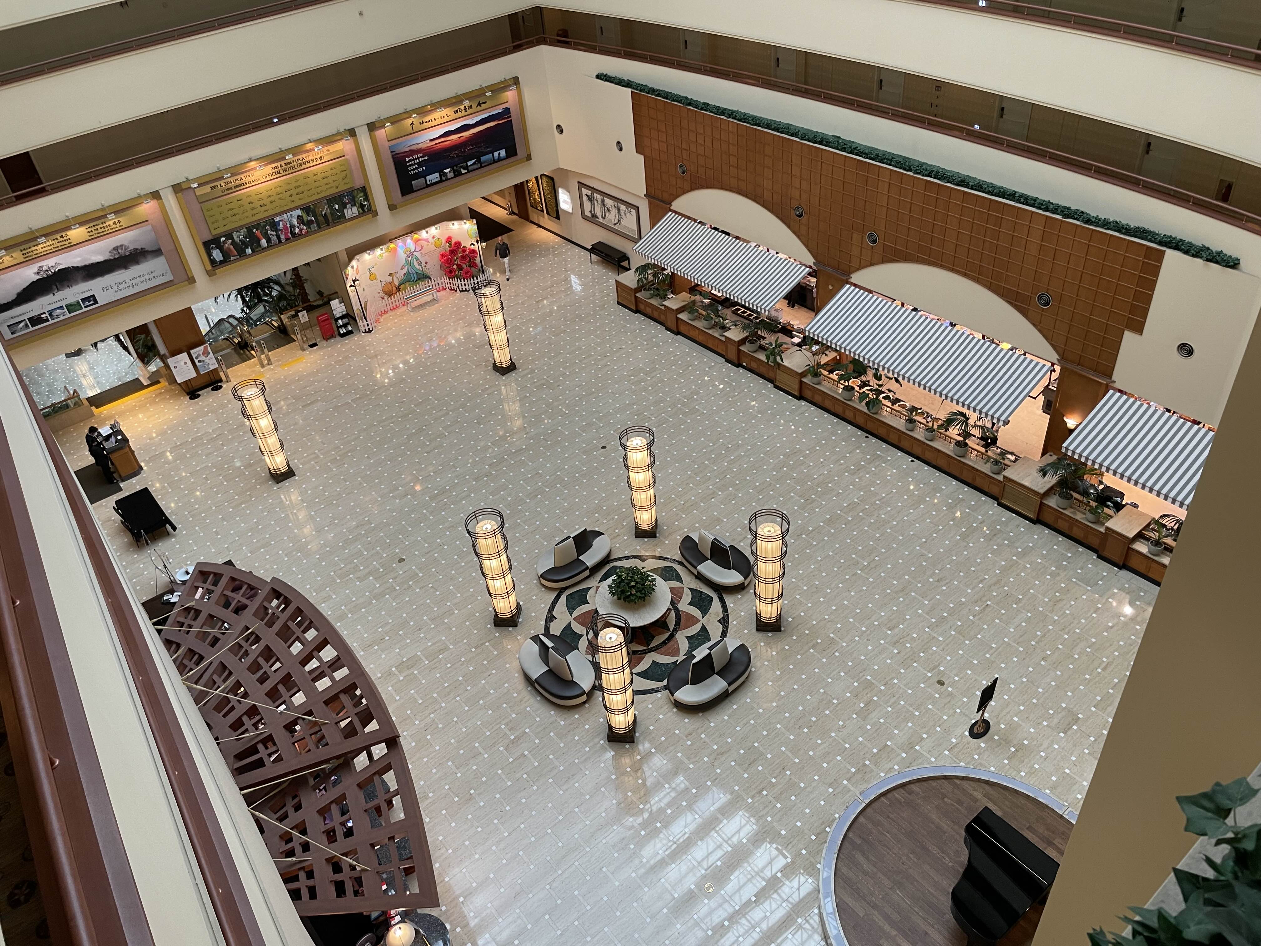 로비쪽으로는 2층의 조식을 먹을 수 있는 공간이 보입니다.