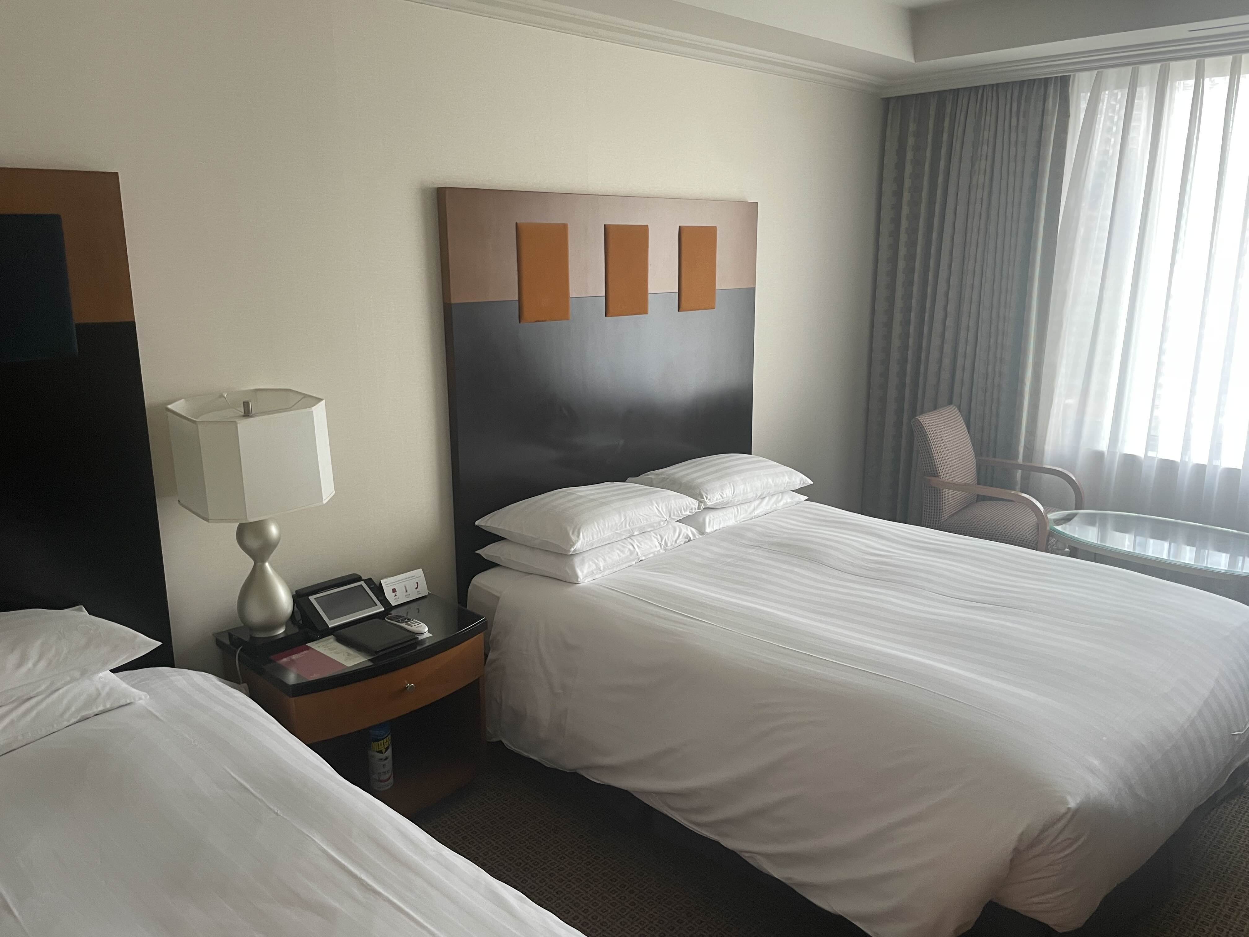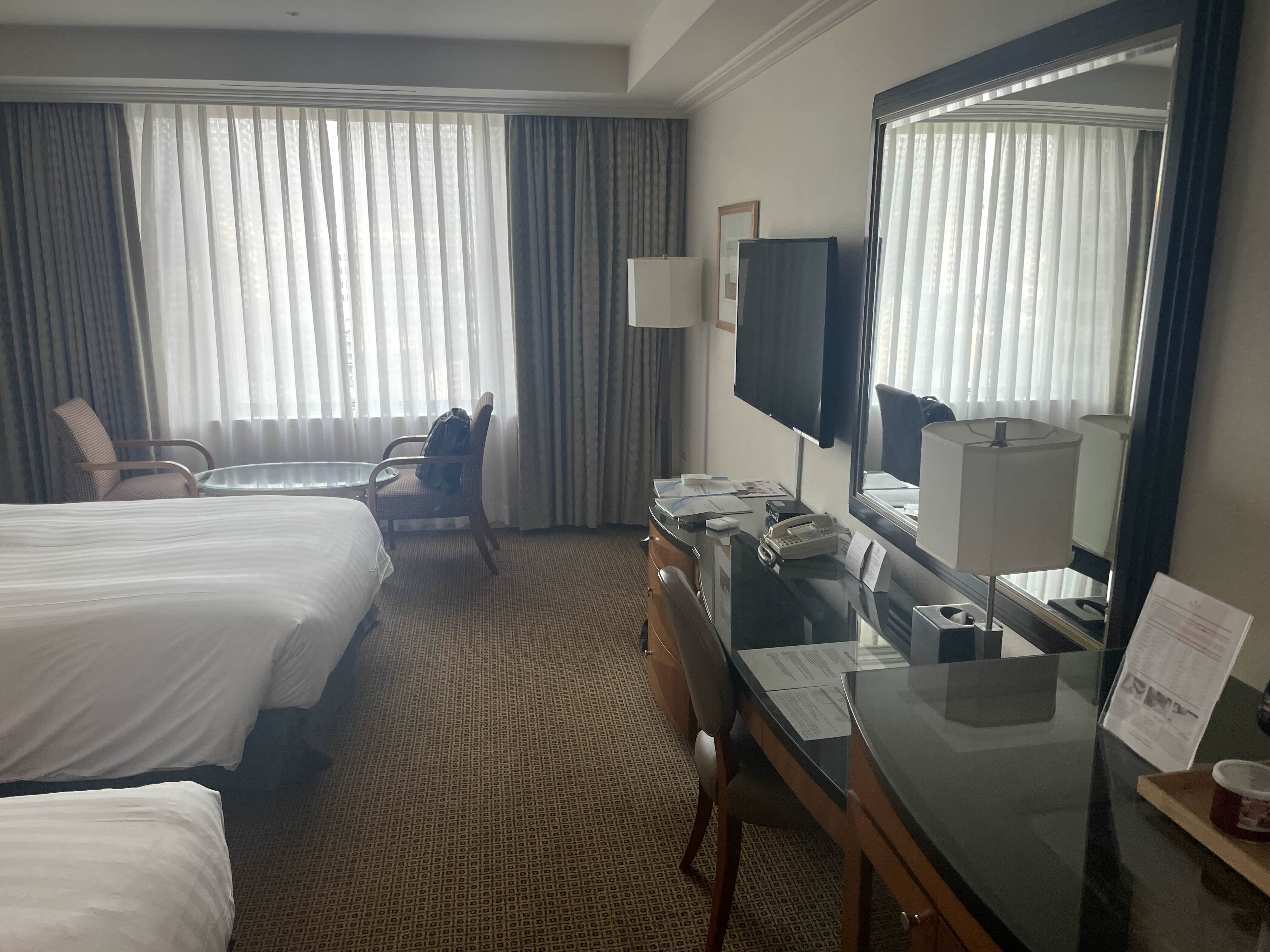 트윈룸으로 침대 두개, 그리고 탁자와 의자 티비를 포함한 파우더 공간, 냉장고, 옷장 등 흔히 볼 수 있는 호텔에서 갖추고 있는 모든 것이 있습니다.