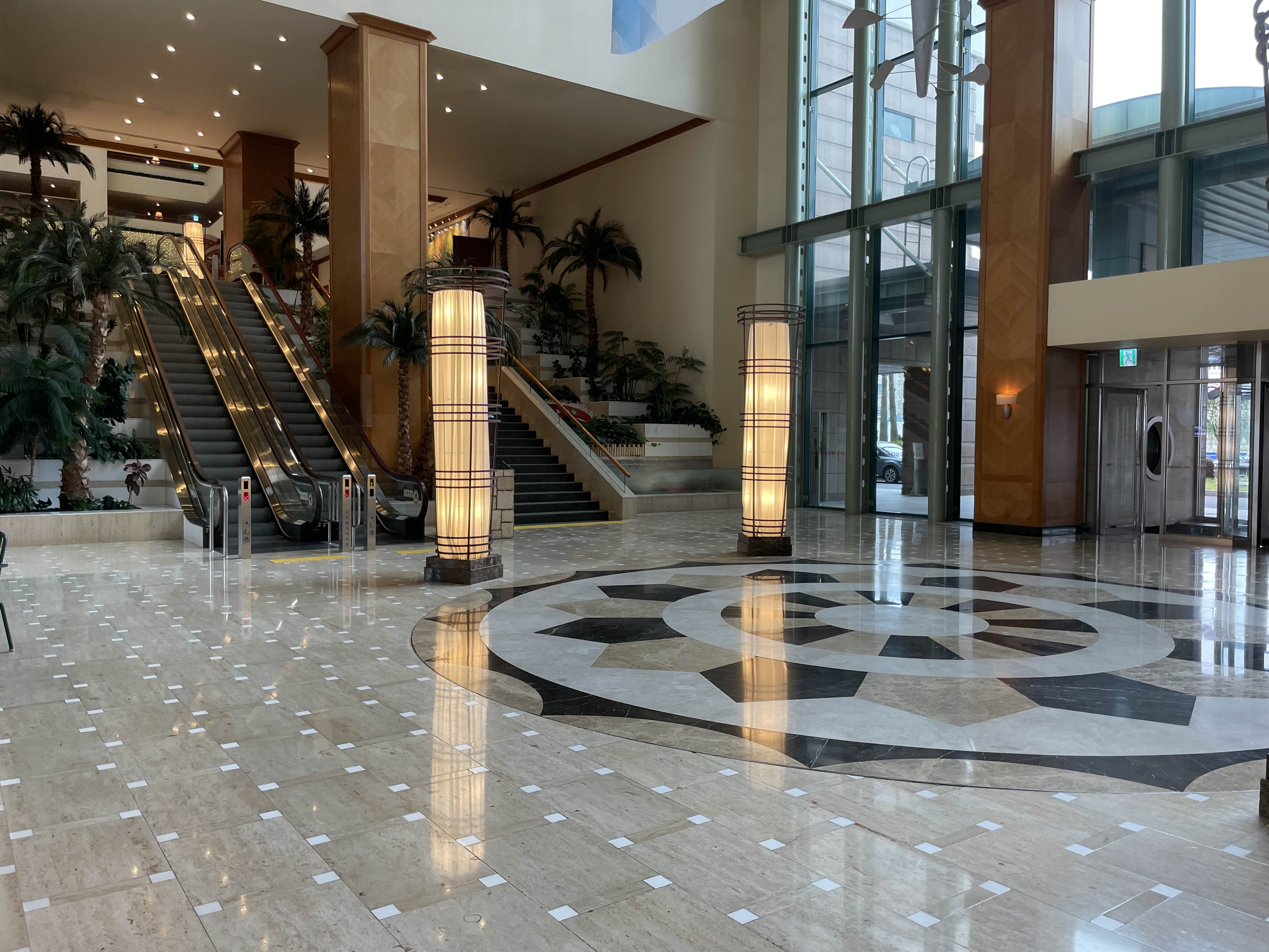 로비들 들어오시면 에스컬레이터를 통해 2층으로 올라갈 수 있습니다. 2층에 프론트가 있습니다. 외국 드라마에 흔히 나오는 구조죠? 라마다가 미국 브랜드라 그런지 미국 풍의 호텔 분위기를 드러내는 것 같습니다.