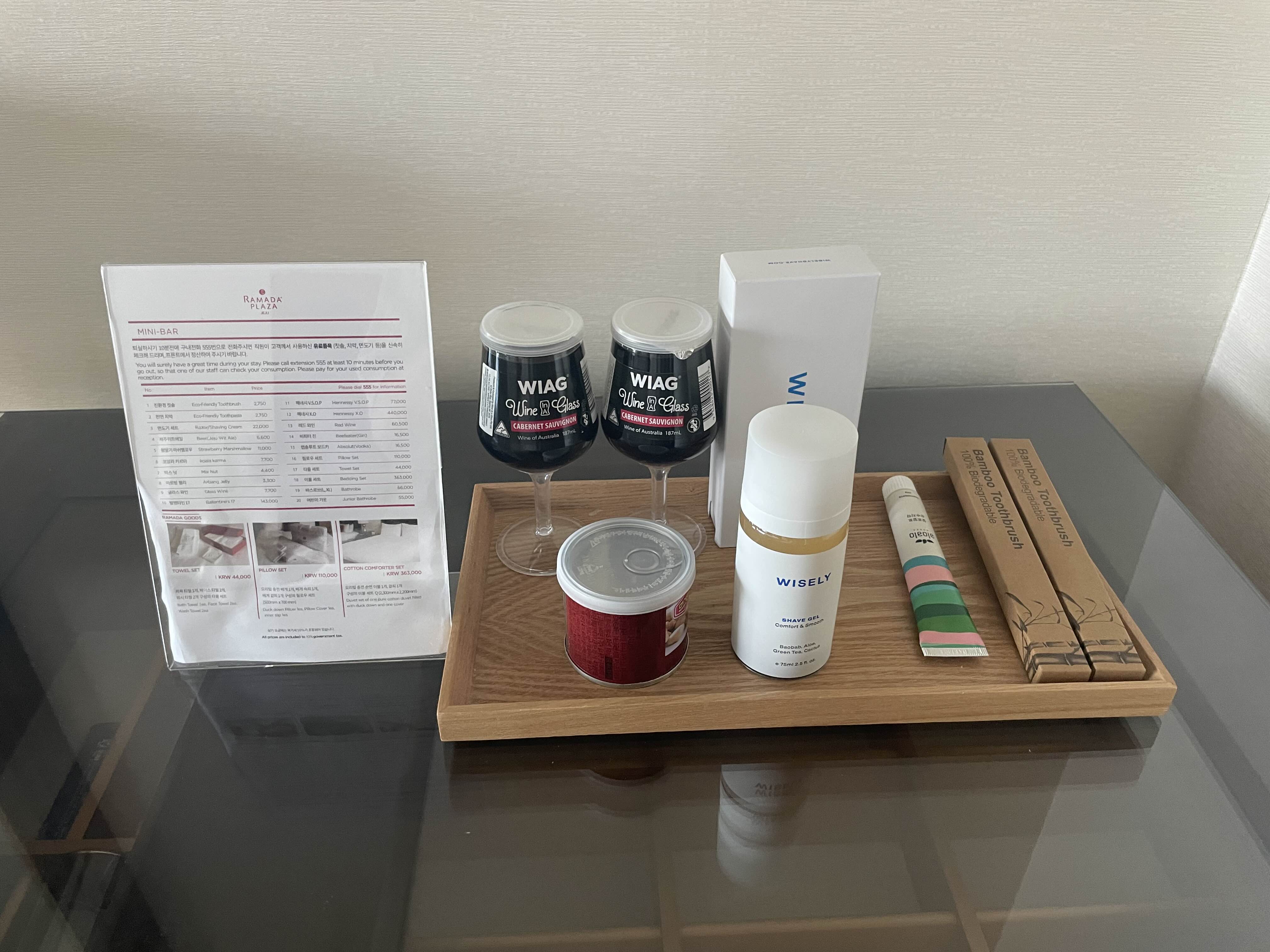 셀프바가 있었는데 컵와인과 칫솔, 치약 등 다양한 품목이 있습니다. 사용하면 별도 요금이 부과되니 사용하지는 않았습니다. 컵와인이 있었다는 점이 특이했습니다.