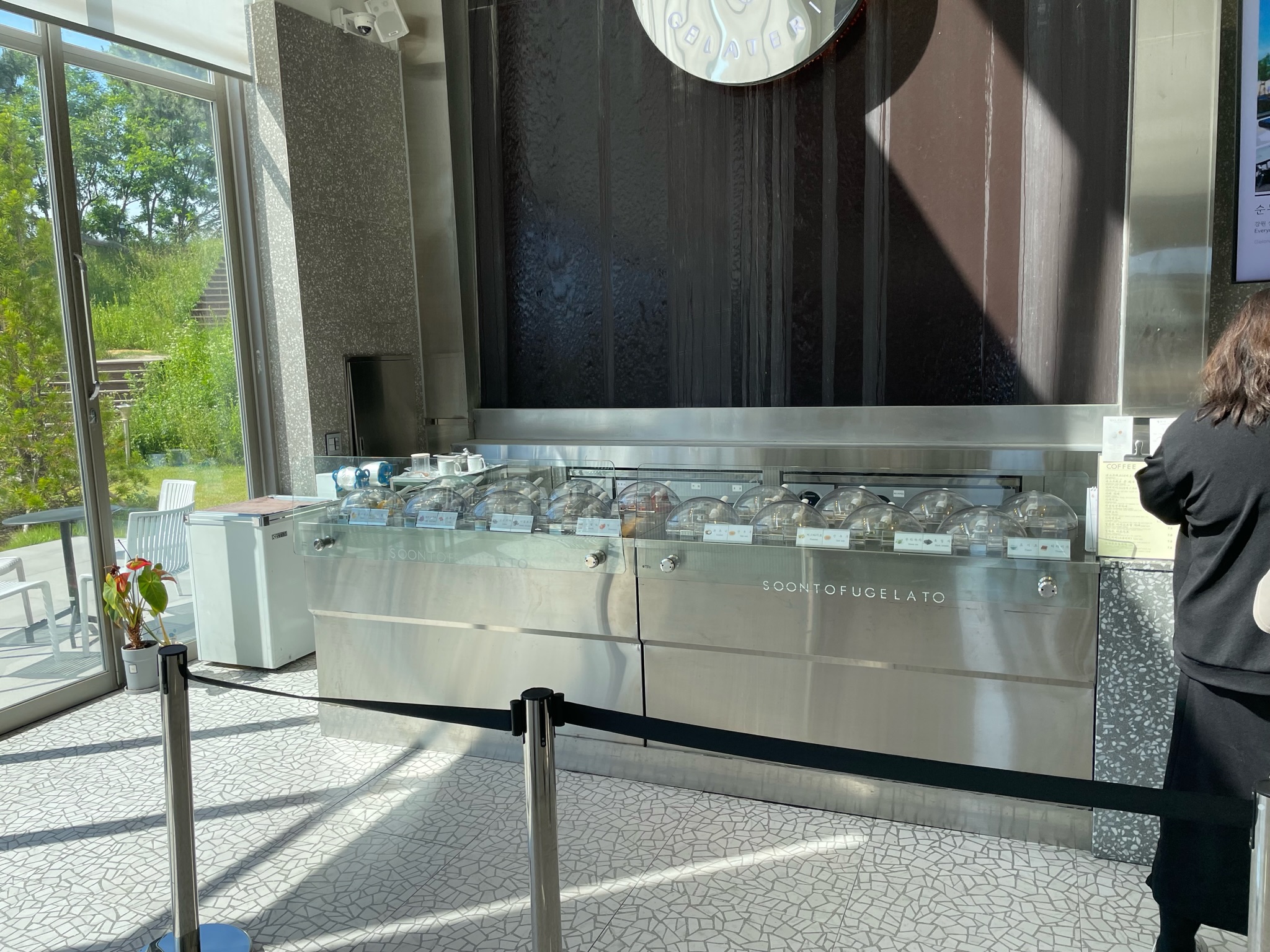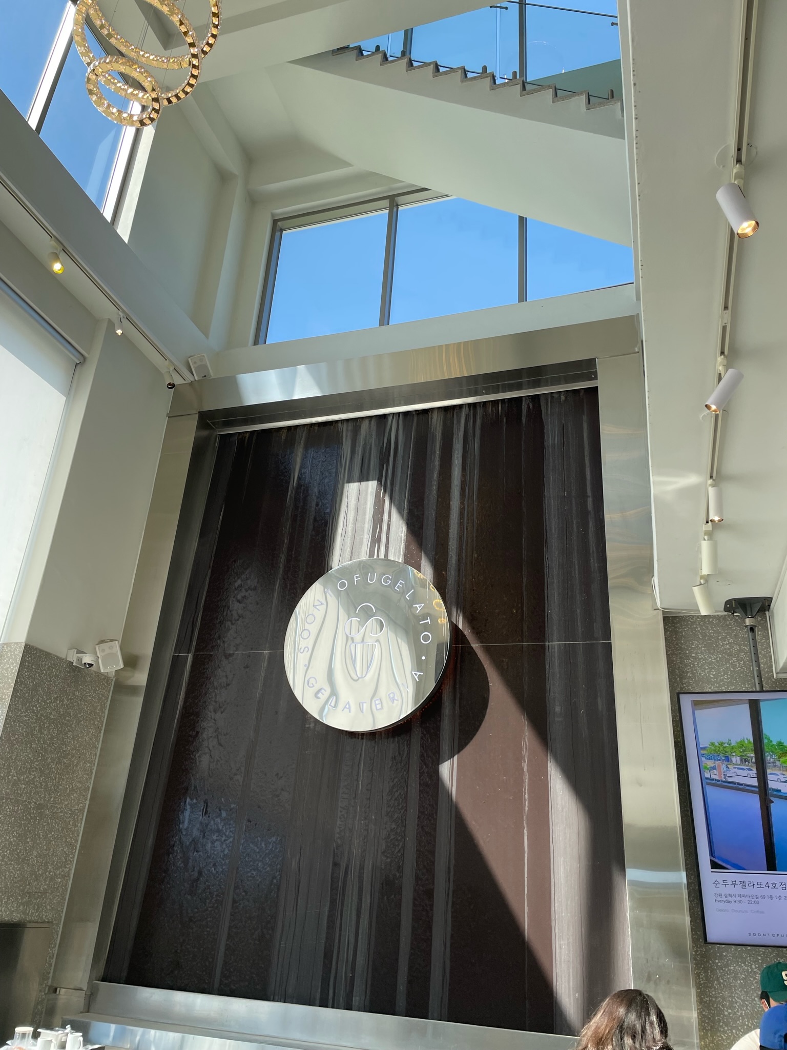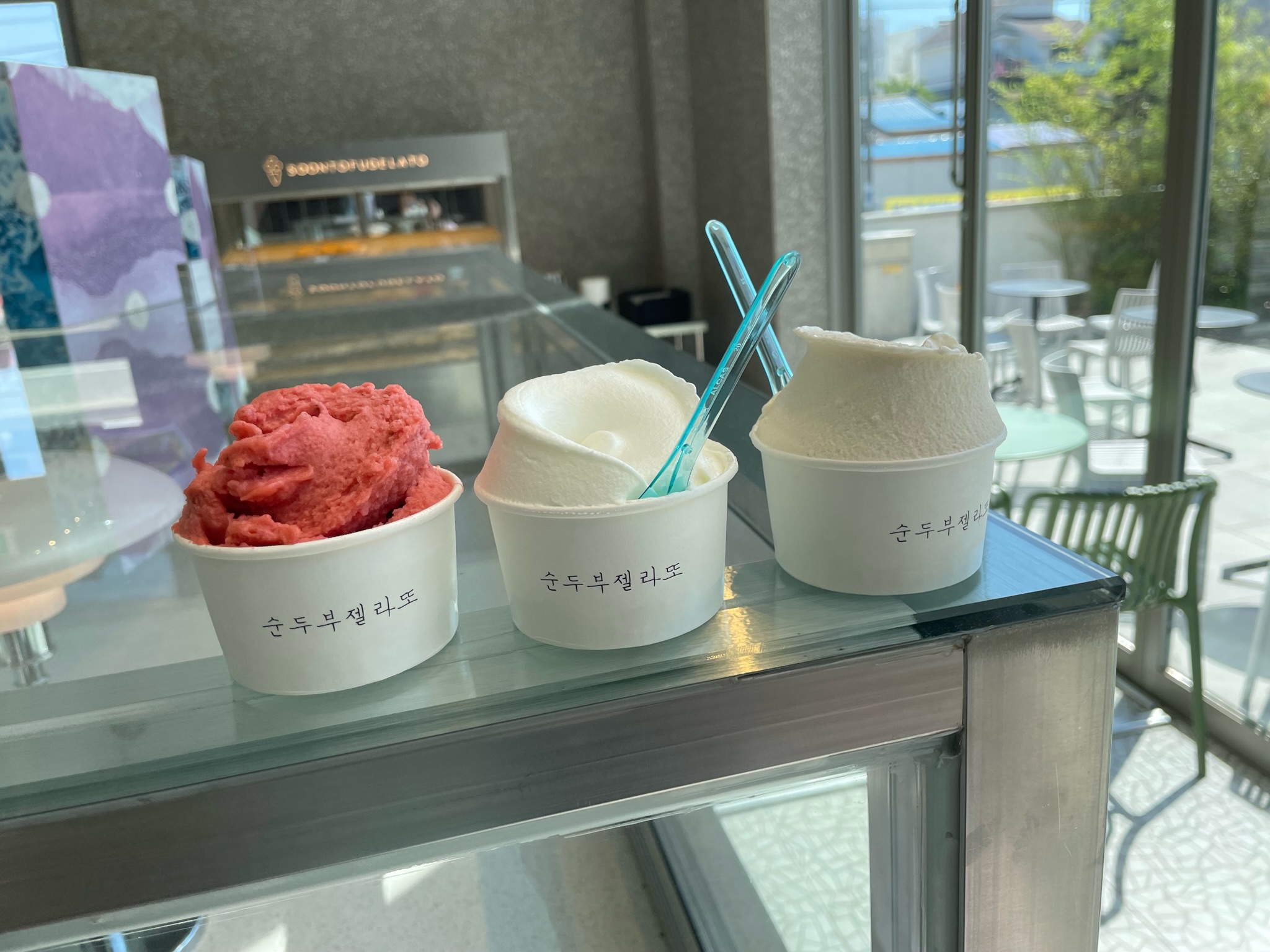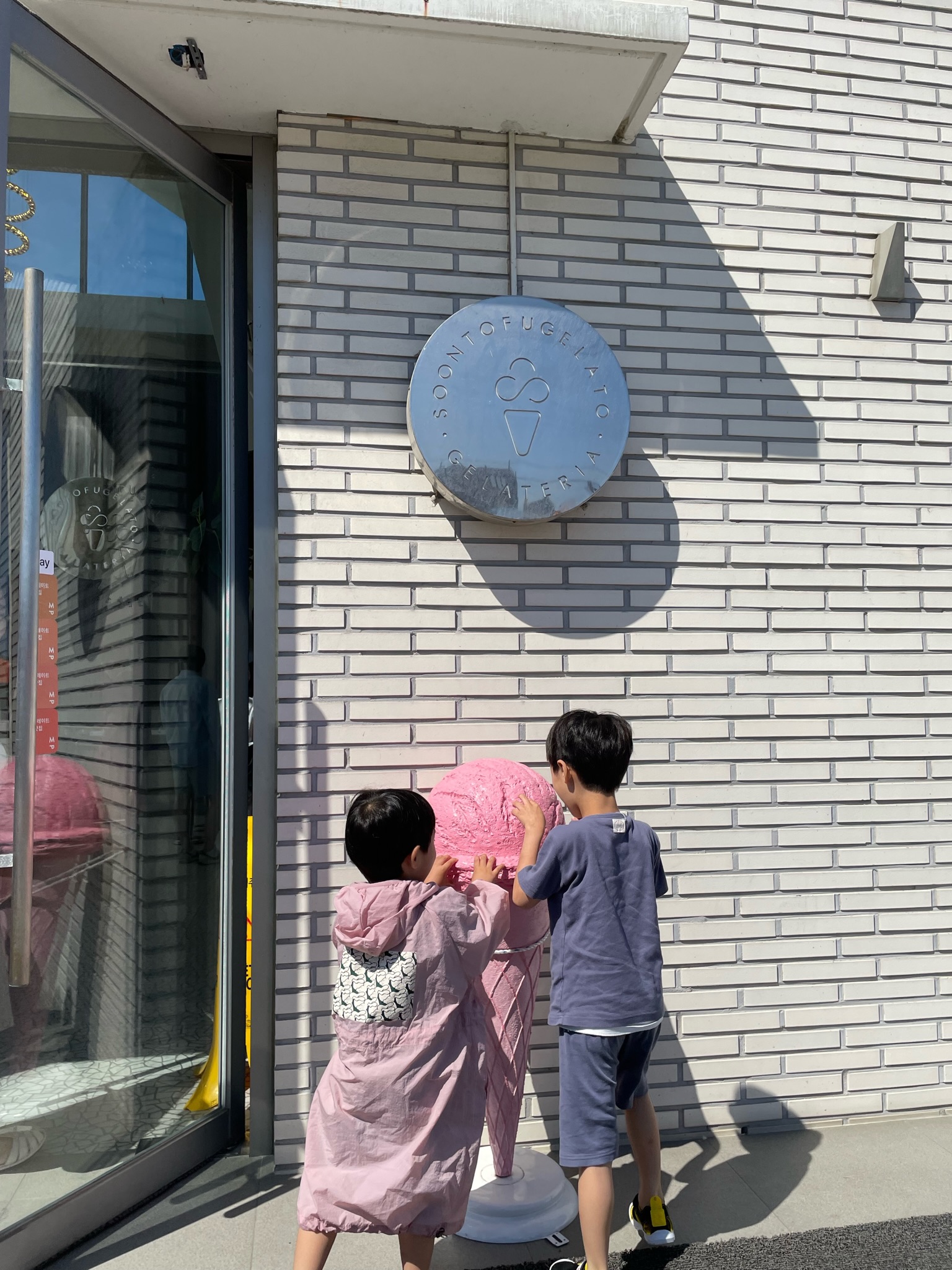 순두부 젤라또 입구에는 아이들 키만한 젤라또 모형과 메탈 재질의 간판이 있습니다. 어디서든 잘 보이는 건물이니 쉽게 찾을 수 있을 거예요.