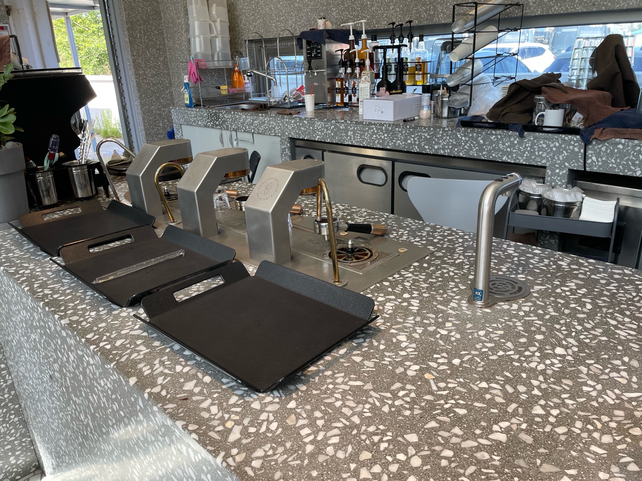 에스프레소 삿은 특이한 모양의 기계에서 내리고 있었습니다. 깔끔하게 정렬된 트레이 뒤로 보이는 것이 에스프레소 머신인데 요새 카페는 정말 특이하고 신기한 기계들이 많이 보입니다. 에스프레소 바가 이렇게 발전했다니, 정말 격세지감이 느껴집니다.