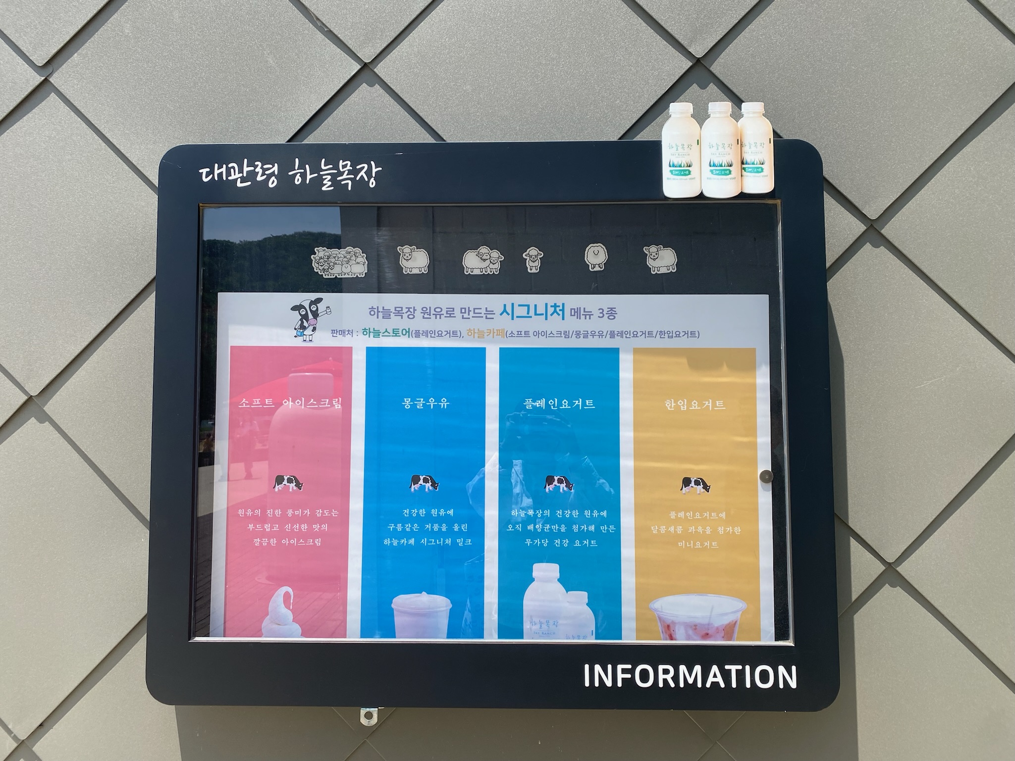 금강산도 식후경이라고 하는데 대관령이라고 다르겠습니까. 두시간을 넘게 놀았더니 슬슬 출출해집니다. 하지만 대관령은 환경을 위해 이런 저런 제약이 많은 곳이라 식당을 운영할 수 없습니다. 삼양목장도 그렇고 하늘목장도 그렇고 식당을 운영하지 않더라고요. 대신 휴게음식점인 카페와 직접 끓여먹는 라면은 먹을 수 있습니다.