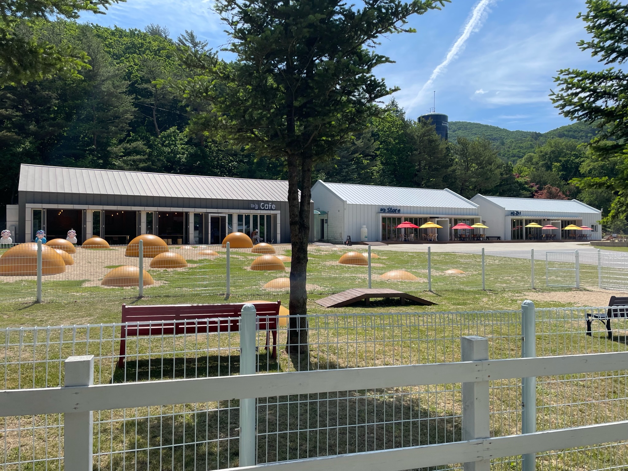 쉼터 앞으로도 아이들이 놀 수 있는 초원과 작은 개들을 데리고 놀 수 있는 애견 쉼터가 있습니다. 애견 쉼터는 대형견과 소형견으로 나뉘어져 있어 개를 데려온 분들도 잘 놀다 가실 수 있습니다.