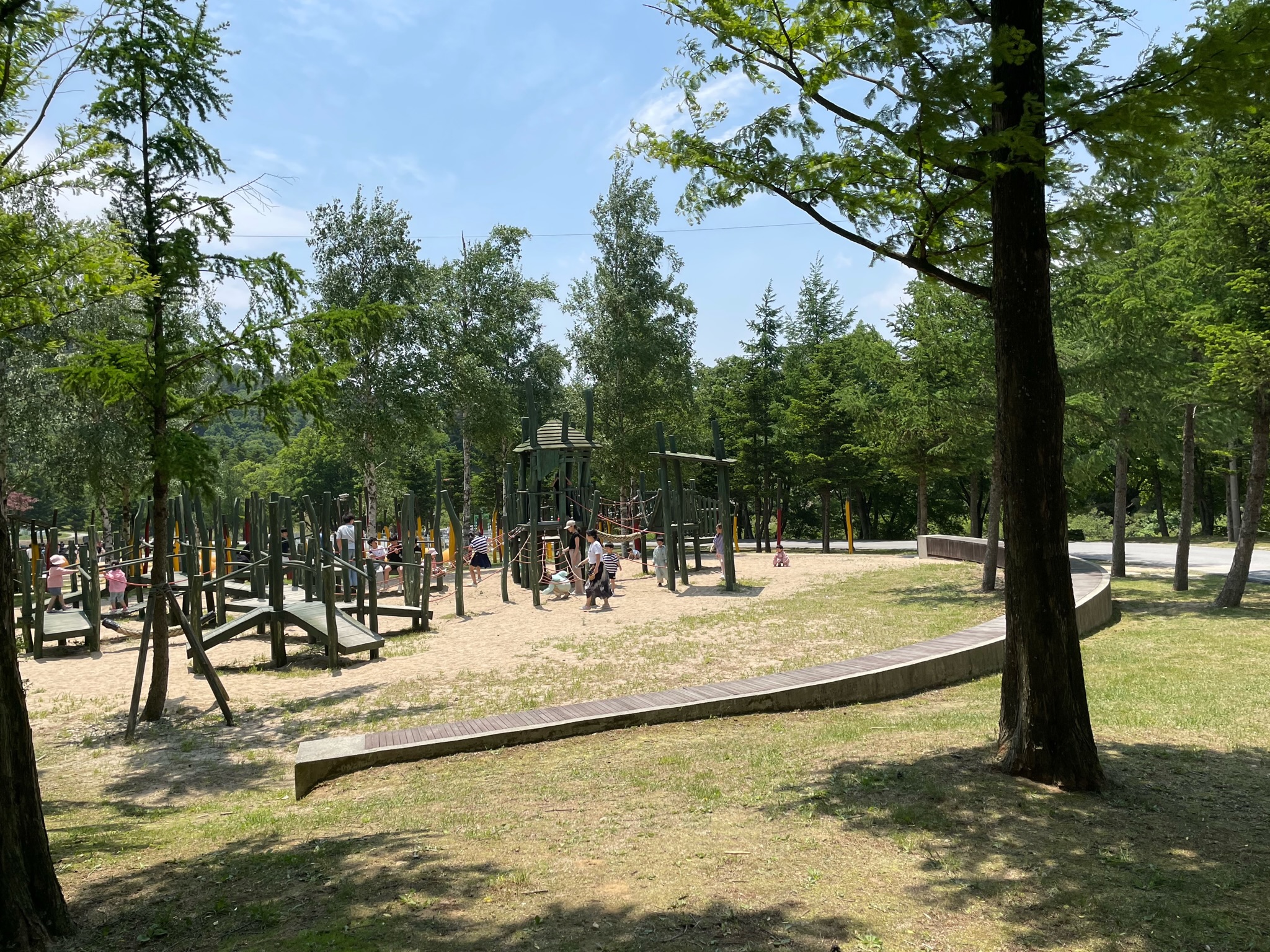쉼터와 카페 주변에는 아이들 놀이터도 있어 시간을 보내기 좋습니다. 그네는 없지만 다양한 체험코스가 있어서 여기서도 한동안 있었습니다.