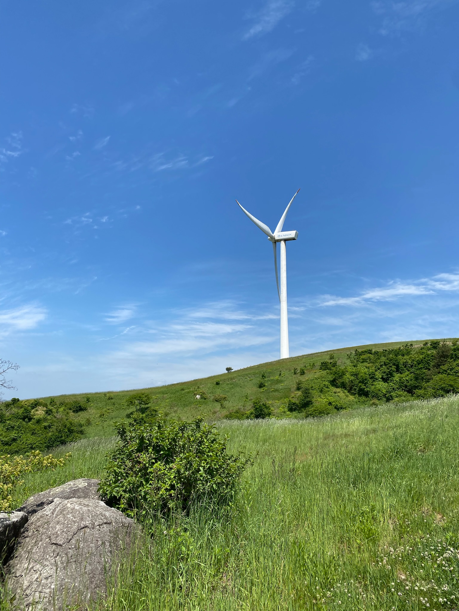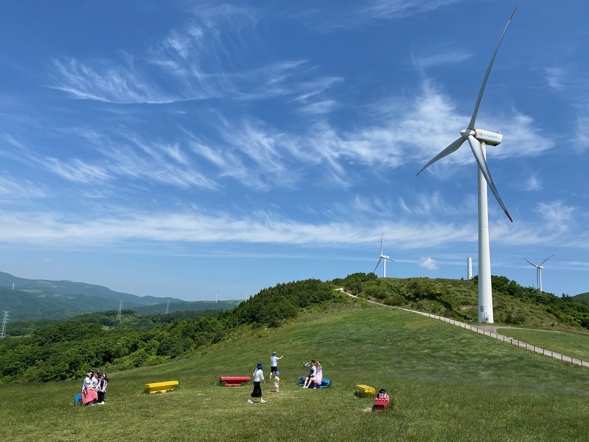 휭휭 빠르게 돌아가는 풍력발전소 옆에서 사진을 찍을 수도 있습니다. 풍력발전소의 크기는 생각보다 엄청 컸습니다. 높이가 20미터에 날개지름이 30미터에 달한다고 하니 이국적이면서 위용있는 풍력발전소의 모습을 가까이서 볼 수 있는 것만으로 아이들에게 친환경 전력생산에 대한 교육이 될 수 있습니다.