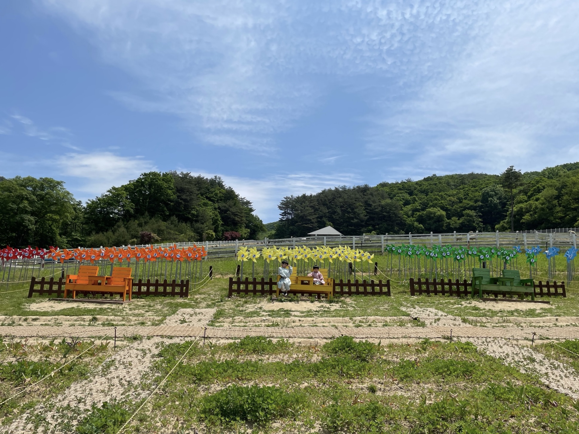 사진을 찍자고 맘을 먹으면 15분의 시간이 너무 짧게 느껴집니다. 하지만 대관령 정상에 풍력발전기가 괜히 있는게 아닙니다. 6월 초에 갔음에도 불구하고 바람이 어마무시하게 불어옵니다. 잠깐 정신을 놓으면 모자같은 건 금새 대관령 산신령에게 선물로 상납하고 올지도 모릅니다. 15분이 지나 더 있고 싶으시다면 다음 트렉터를 타시면 됩니다. 문제는 다음 트렉터는 30분이나 더 기다려야한다는 것이죠. 총 45분을 기다려야 다음 트렉터를 탈 수 있습니다. 바람이 불지 않는다면 기다릴만도 합니다. 그리고 바람을 막아줄 고정마차가 두개가 있긴한데, 우리가족은 15분 투어만 하고 빠르게 내려왔습니다.