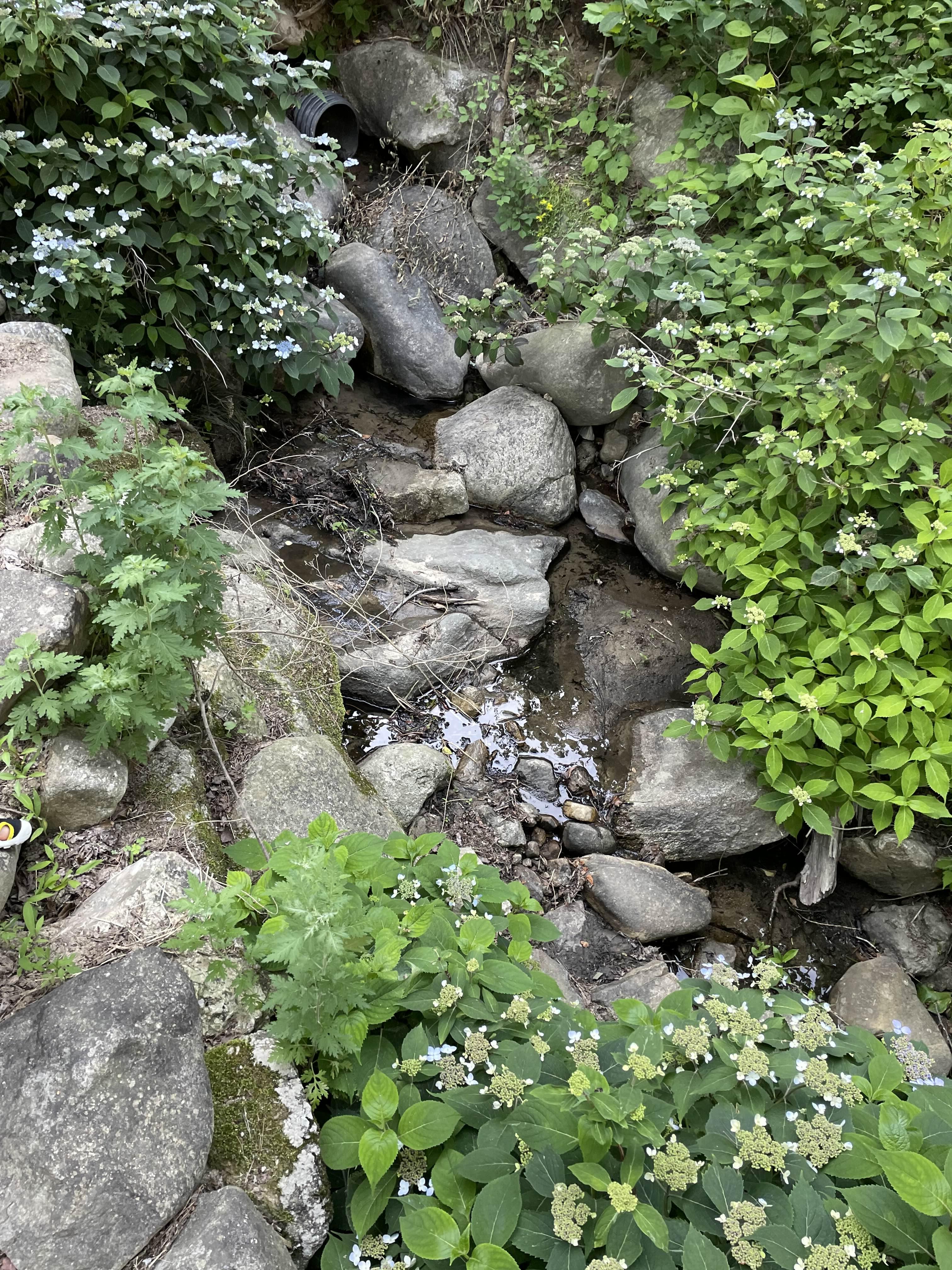 캠핑장에서 주차장을 지나 조금 더 나오면 조그만 도랑이 있습니다. 계곡이라고 말하기도 민망한 수준입니다. 발이나 담그고 발장구를 칠 수 있을 법한 조그마한 도랑입니다. 저는 혹시나 가재가 있나 싶어 뒤져보았지만 가재는 찾지 못했습니다.