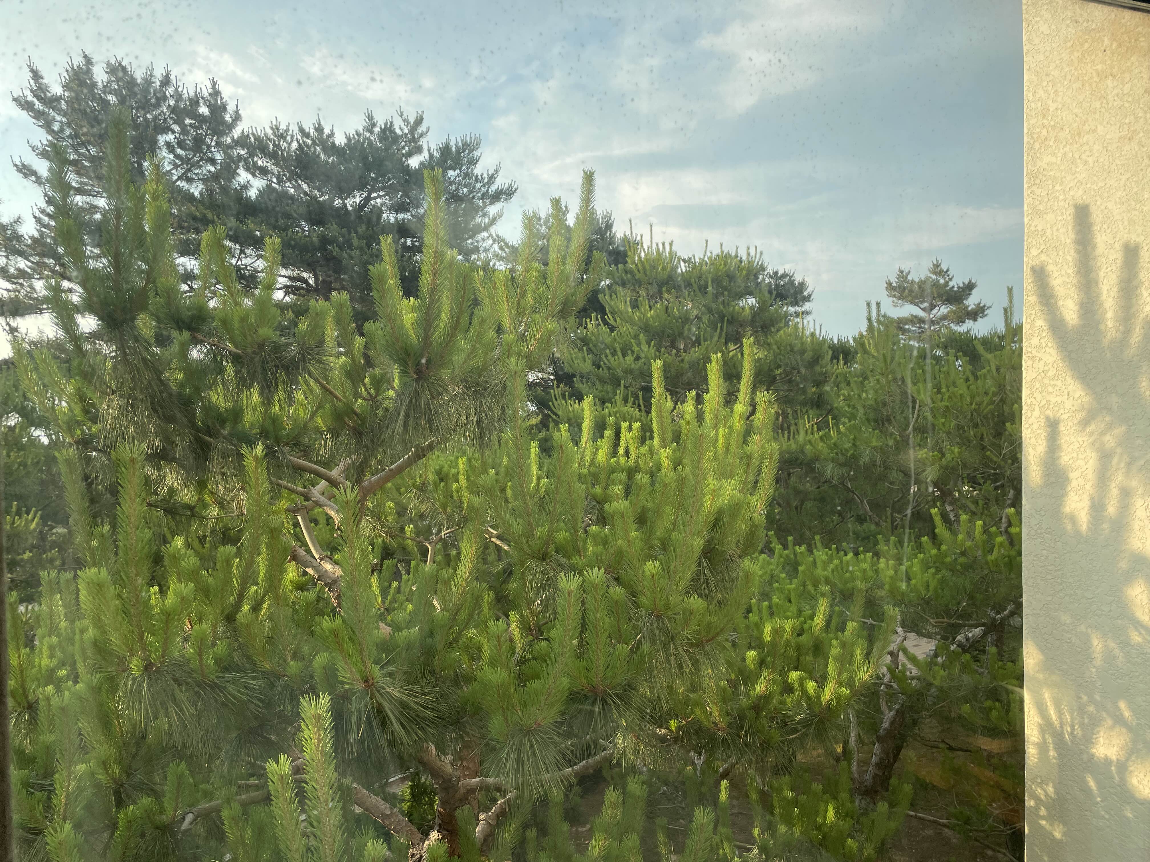 2층 오션뷰 쪽임에도 불구하고 창문으로는 바다가 거의 보이지 않습니다. 소나무 숲이 울창해서 나무뿐이 보이지 않습니다. 이정도면 사실상 파인뷰라고 봐야합니다. 자연 속에 있는 느낌이 나쁘지 않습니다. 적어도 바다 냄새는 나니까요.