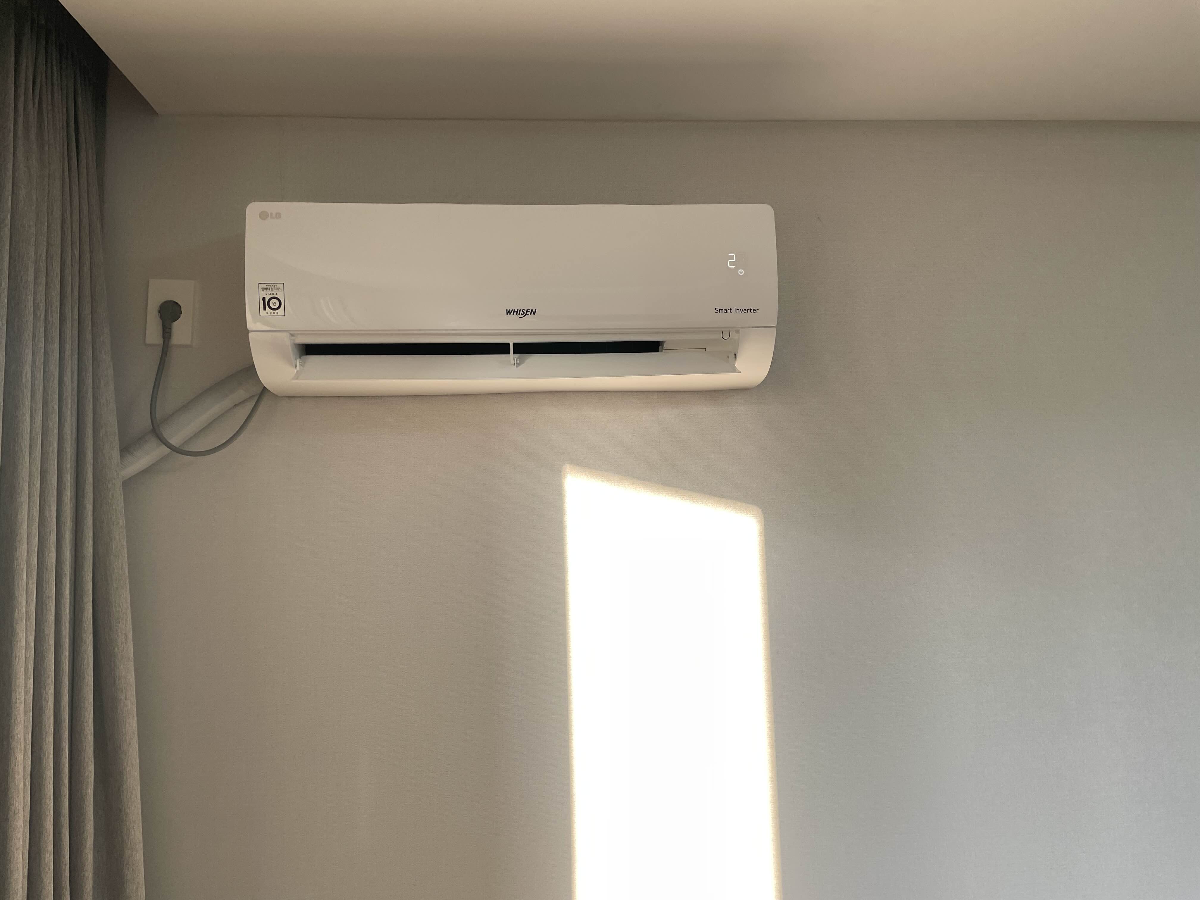 객실에는 소형 에어컨이 하나 설치되어있습니다. 뭐 바닷가니까 그렇게 덥지 않은가봅니다. 저도 6월 중순에 간지라 에어컨은 틀지 않고 잤습니다.