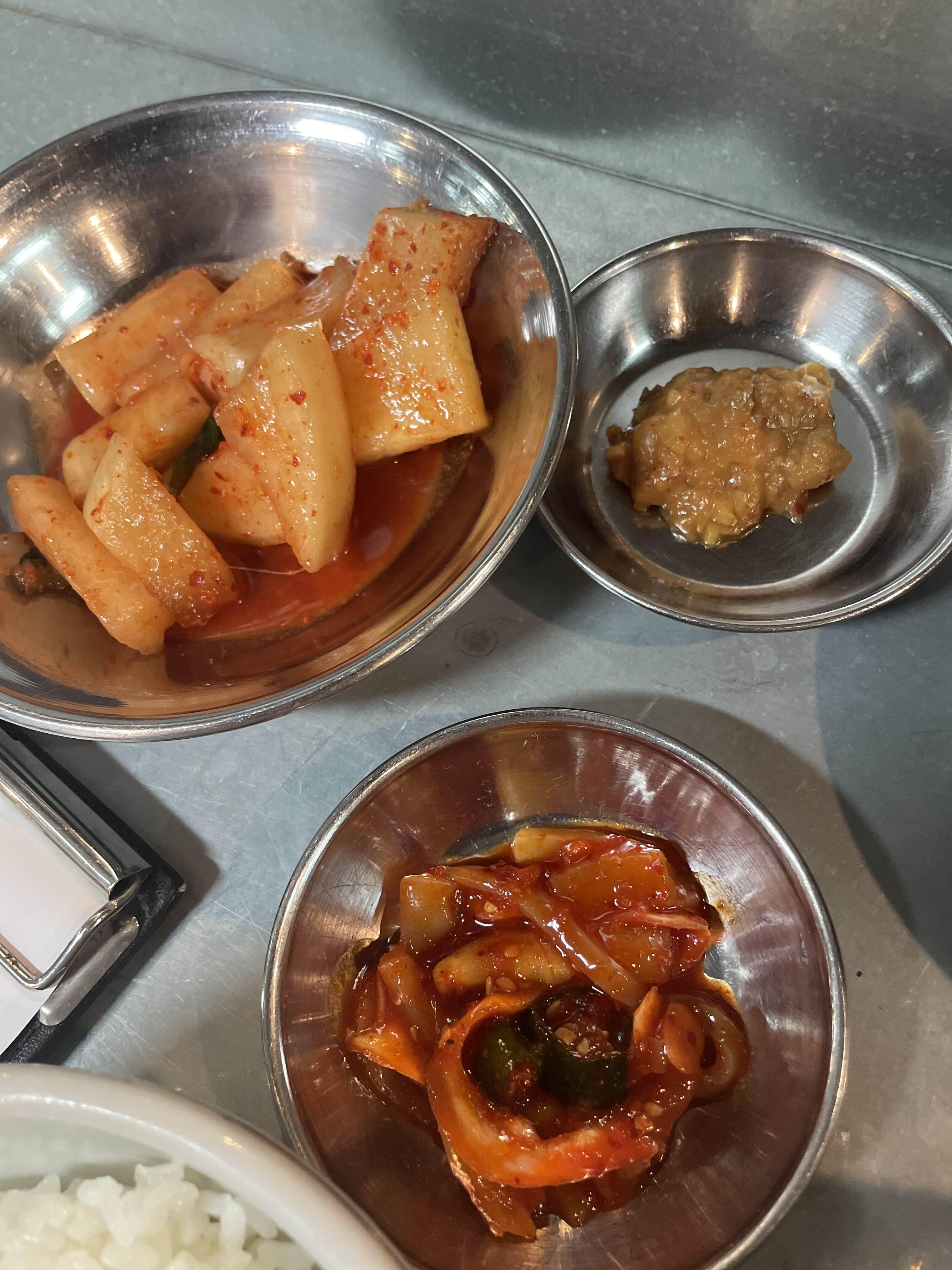 하지만 반대로 생각해보면 이 또한 행운이다. 깍두기를 더 달라고 하면 원가를 절감하기 위해 쥐똥만큼 주는 집들이 있어 두번 세번 리필을 요청할 수밖에 없는 곳이 있었는데, 내가 셀프로 뜬다면 고봉밥 수준으로 퍼올 수 있기 때문이다.