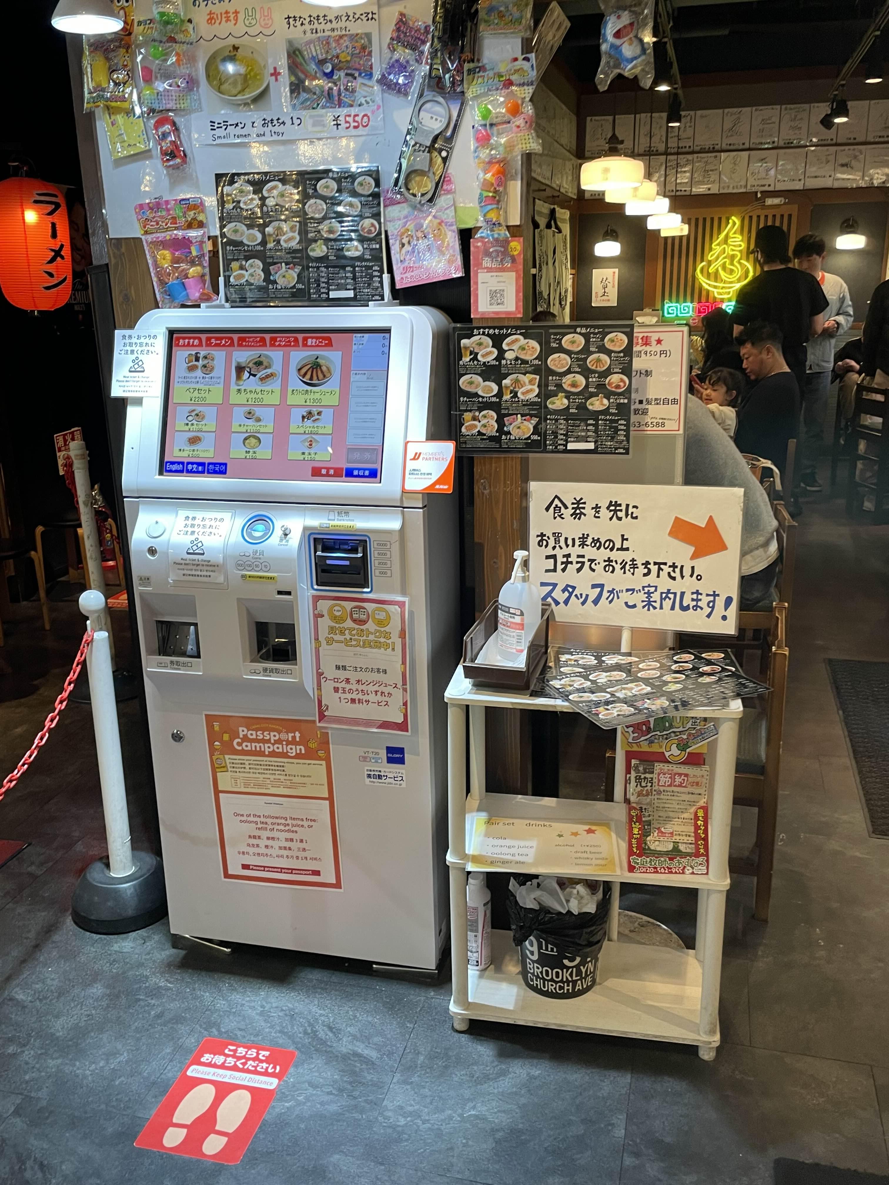 차가 먹혀 캐널시티에는 늦게 도착했습니다. 참좋은 여행 규슈 패키지 여행은 2일차에 저녁을 알아서 먹어야합니다. 일본에 왔으면 라멘하나는 먹어줘야겠다는 일념으로 5층에 있는 라멘집에 가서 라면을 시켜먹었습니다. 모든 라면집이 키오스크로 주문합니다.