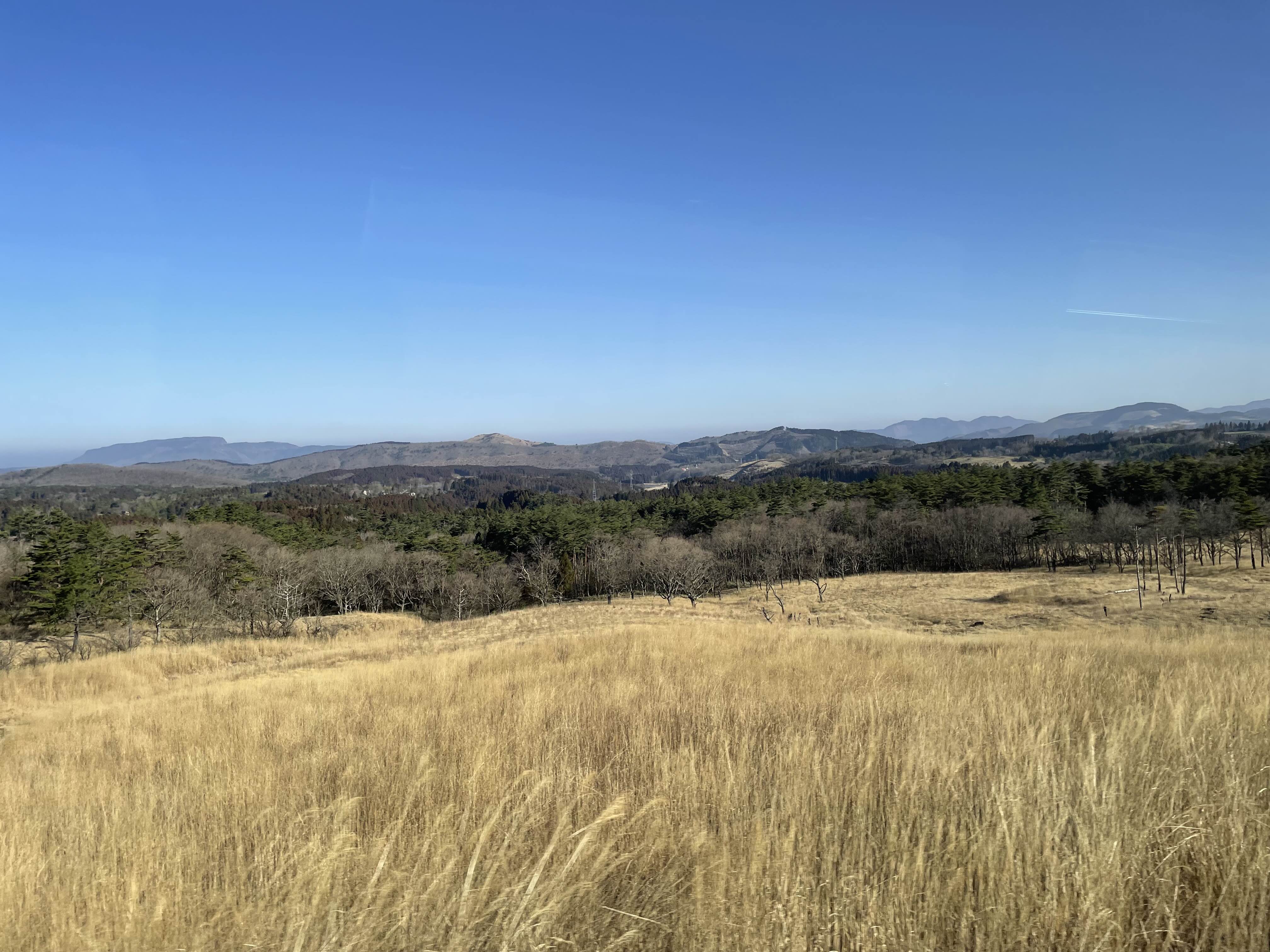 길을 오다가 보면 일본에서만 느낄 수 있는 식생과 분위기, 공기가 있습니다. 하루에만 400킬로미터를 넘게 왔다갔다 차를 타고 움직이는 일정이라 지나는 동안 산을 많이 보게 되는데 일본 산은 한국 산과 결을 달리합니다. 우리나라는 커다란 기암괴석과 소나무가 주를 이루는 반면, 후쿠오카의 산들은 삼나무와 참나무 처럼 보이는 활엽수가 균형있게 식생되어 있습니다. 누가봐도 인공조림을 한 흔적이 보입니다. 곧게 뻗은 삼나무를 보면 일본에 왜이리 나무로 만든 집이 많은지 알 수 있습니다. 특히 아소-쿠주 같은 곳은 억새가 곳곳에 있어 장관이었습니다. 어디를 가도 억새가 보입니다. 하지만 이것도 저는 억새를 불태운 바로 다음에 갔기 때문에 새카맣게 타 있는 억새들 사이에서 이국적이라기보다는 이행성적이라는 생각이 많이 들었습니다.