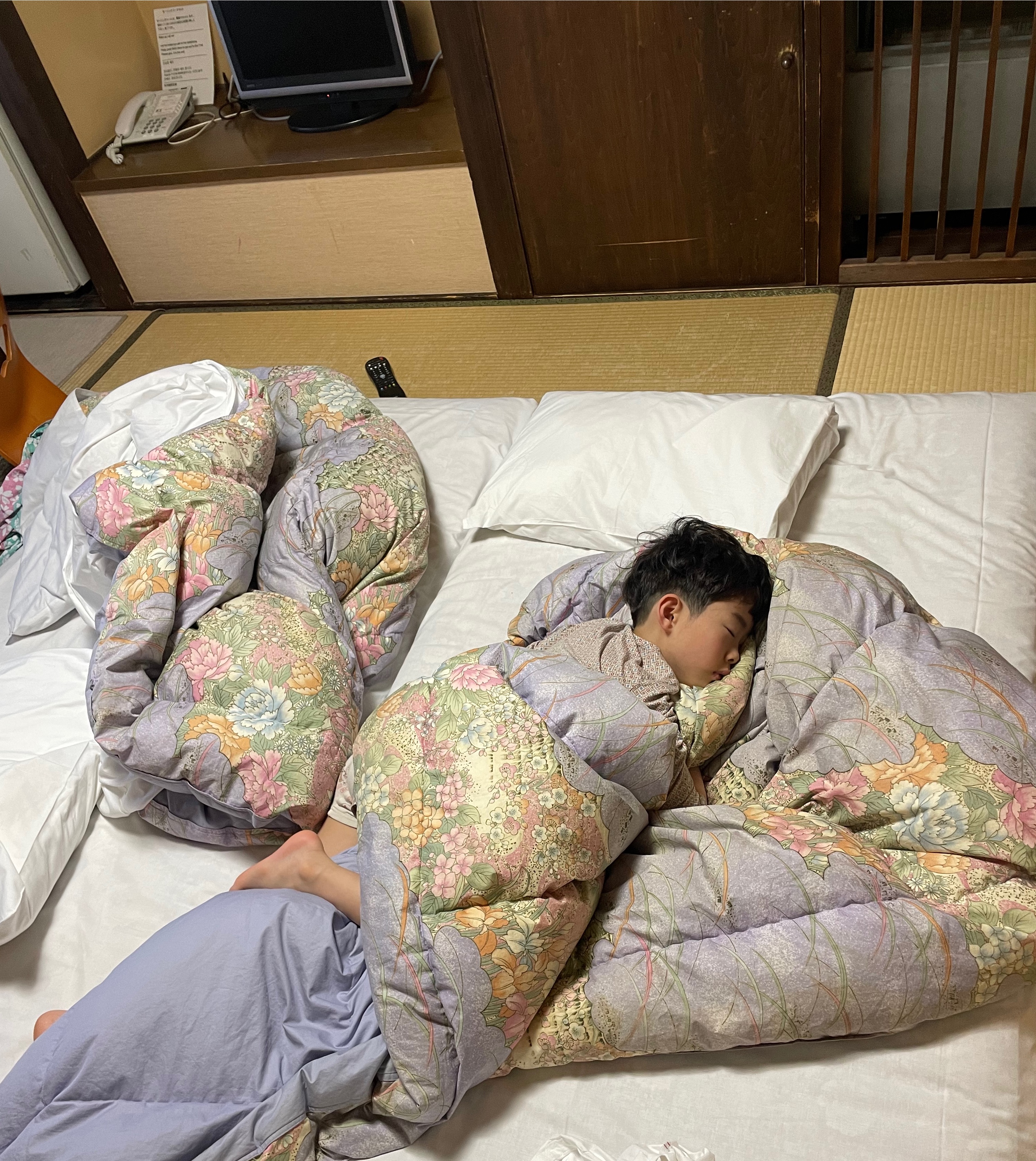 아침에도 5시부터 온천욕이 가능하다고 해서 온천욕을 하려고 했는데, 아이가 자고 있어서 온천욕은 하지 못했습니다. 어제 밤 늦게까지 일본 방송을 보면서 신나게 놀다가 잠들어 세상 모르게 자고 있는 모습을 보면서 이래서 아이와 여행을 다니는구나 싶었습니다. 이번 여행기간 동안 가장 뿌듯한 것은 아이들이 정말 신나하고 재미있게 놀았다는 것이었습니다.