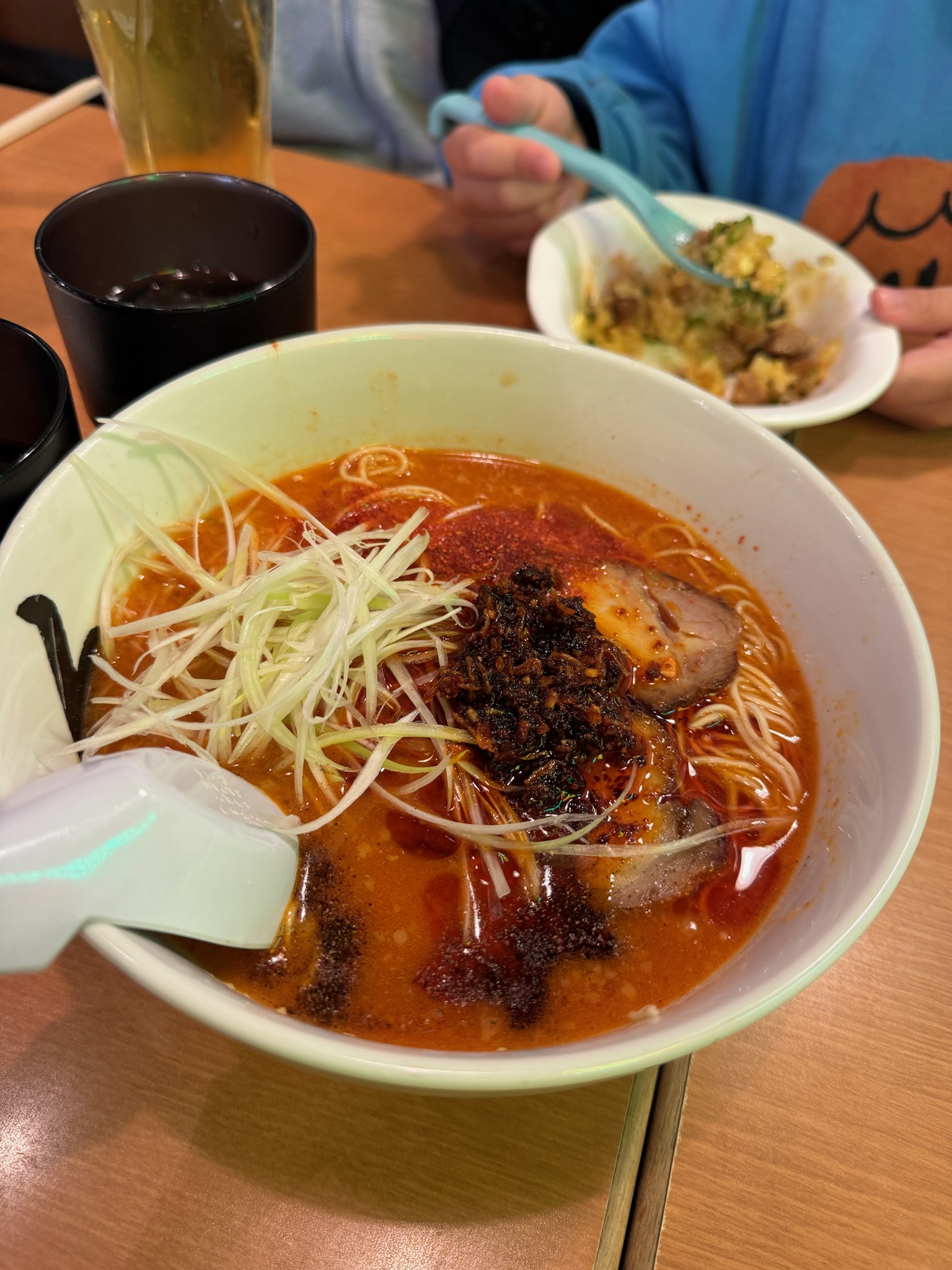 솔직히 뭐라고 써있는지는 모르는 곳에서 먹었는데 캐널시티 5층에 있는 라면집입니다. 세트메뉴와 매운라면을 시켜먹었는데 돈코츠라면은 돼지고기 육수를 우린 것 답게 돼지냄새가 납니다. 국물은 역시나 상당히 짜구요.